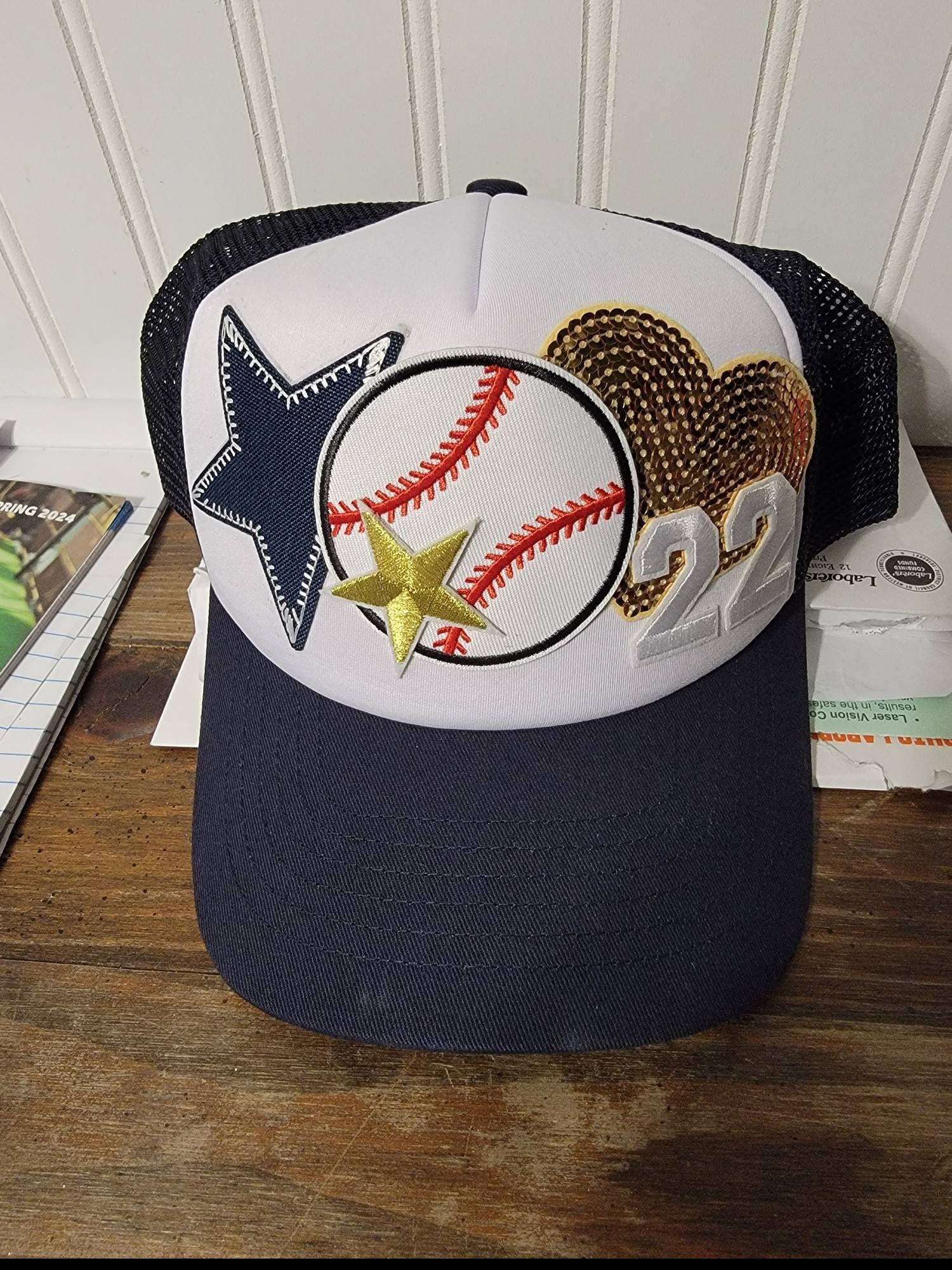 MOCKUPS: We do not send mockups because it slows down the processing time. Please look at our pics in the listing as well as customer pics in the reviews. Patches vary based on availability but you will receive a cap in your color combo with stars and hearts and the sport patch you ordered. Extra patches can be requested but not guaranteed. We strive to accommodate all orders.