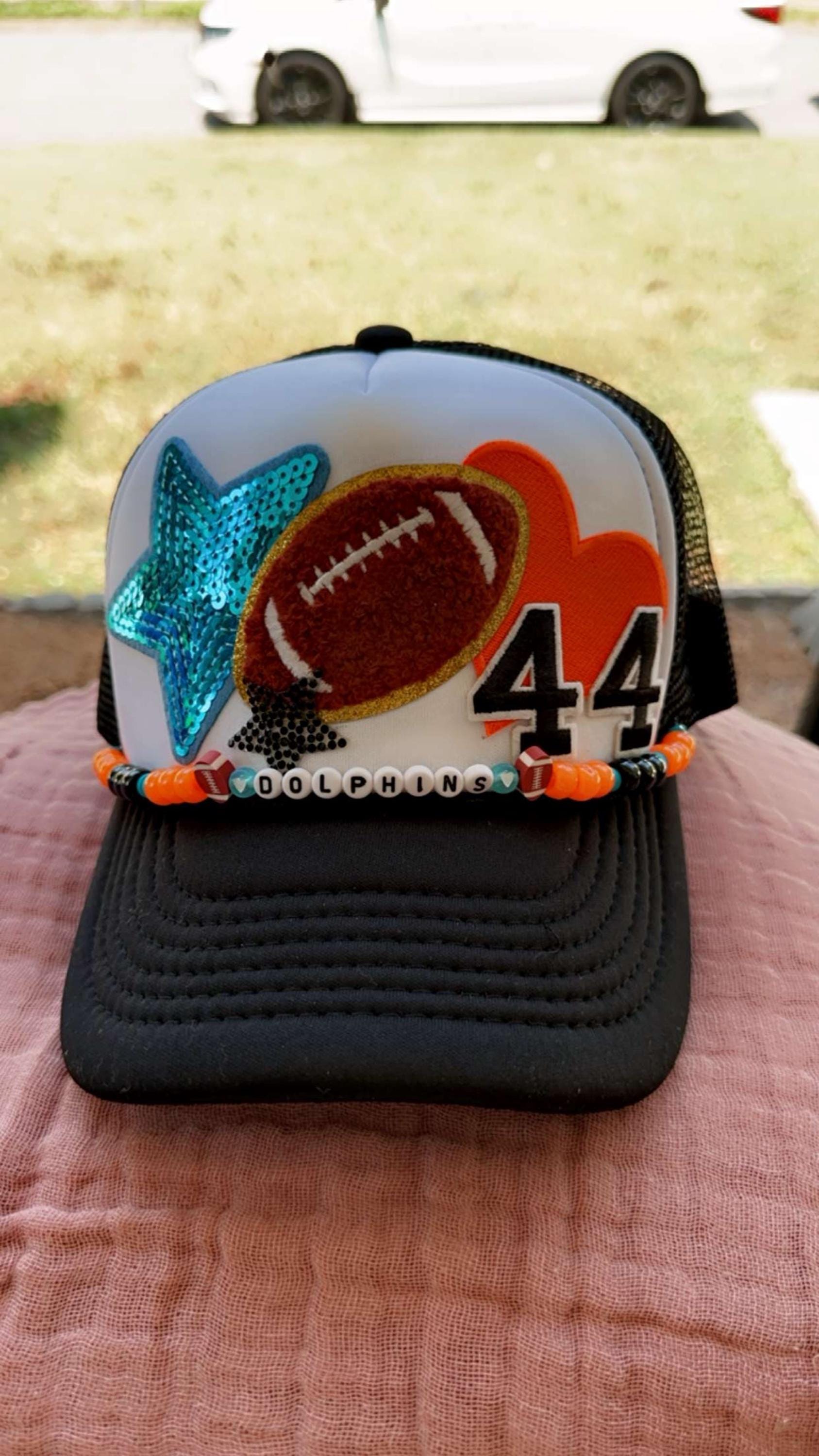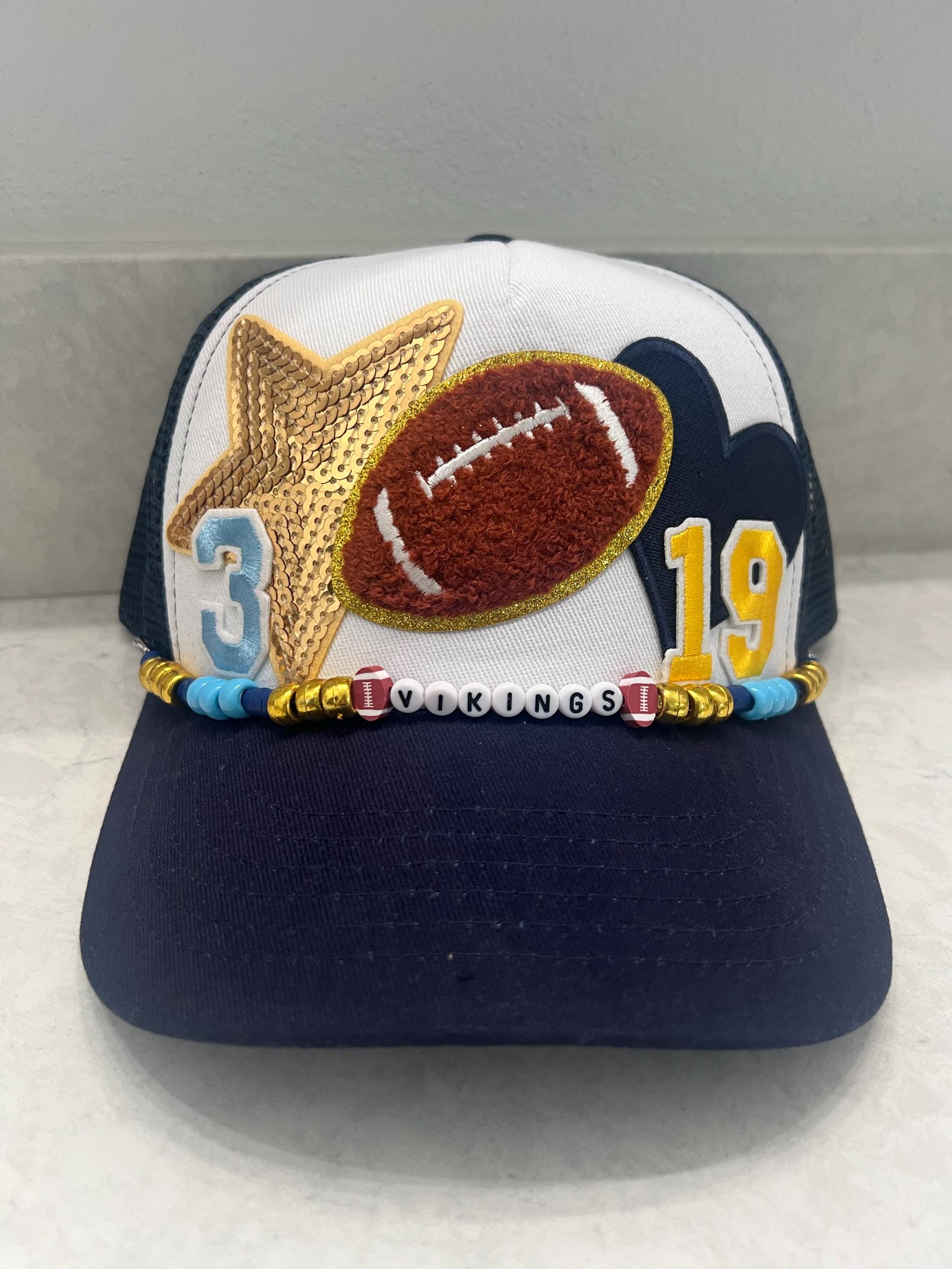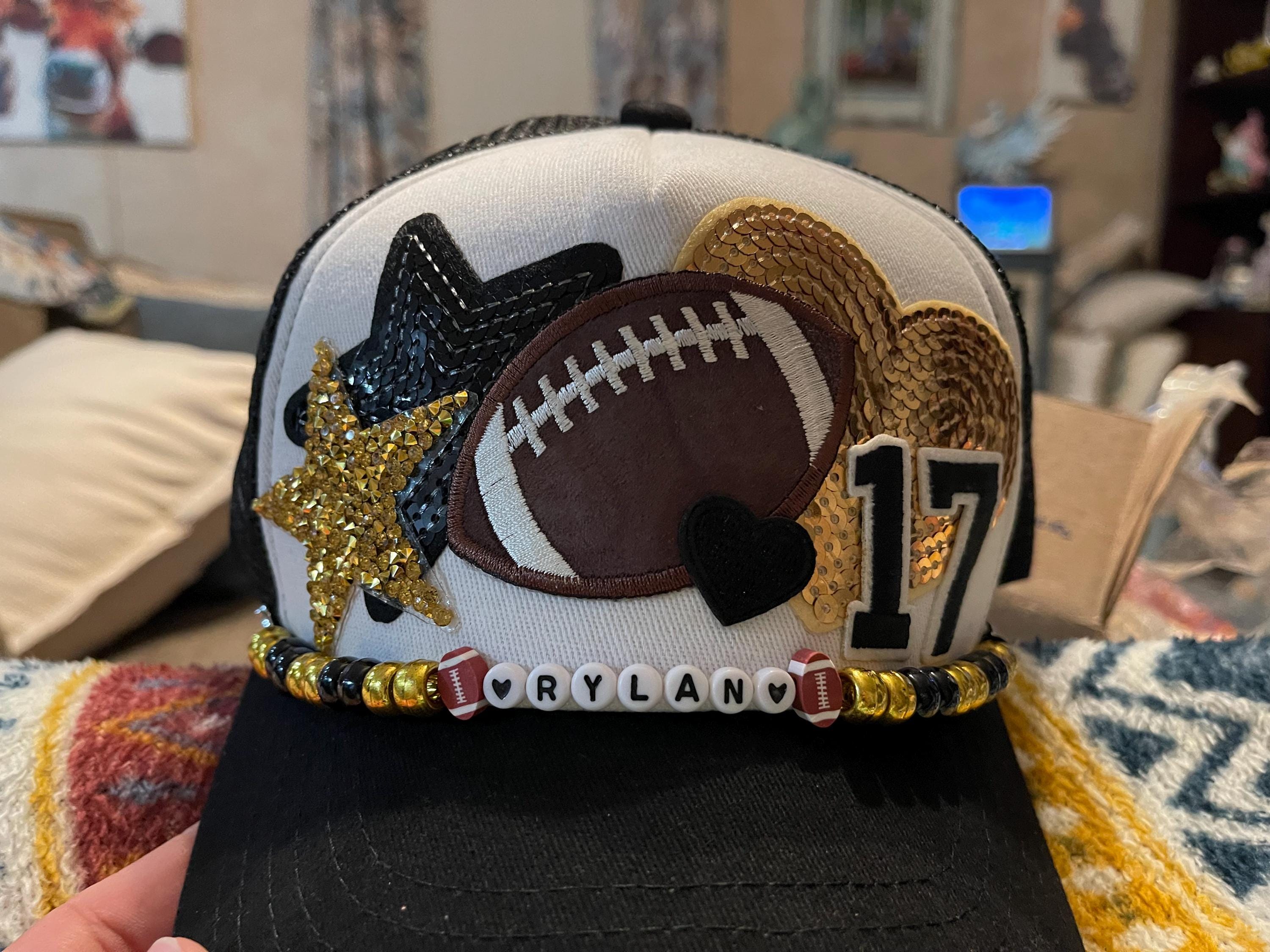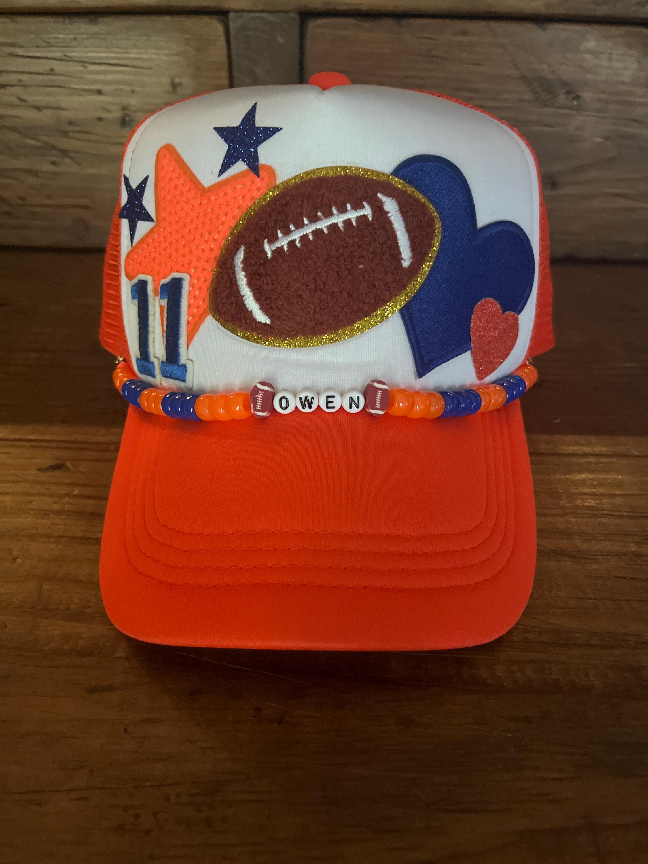 2) In the personalization section, please list 2-3 colors that you’d like represented on the hat. This will help with the color selection for patches and hat chain ( if ordered).