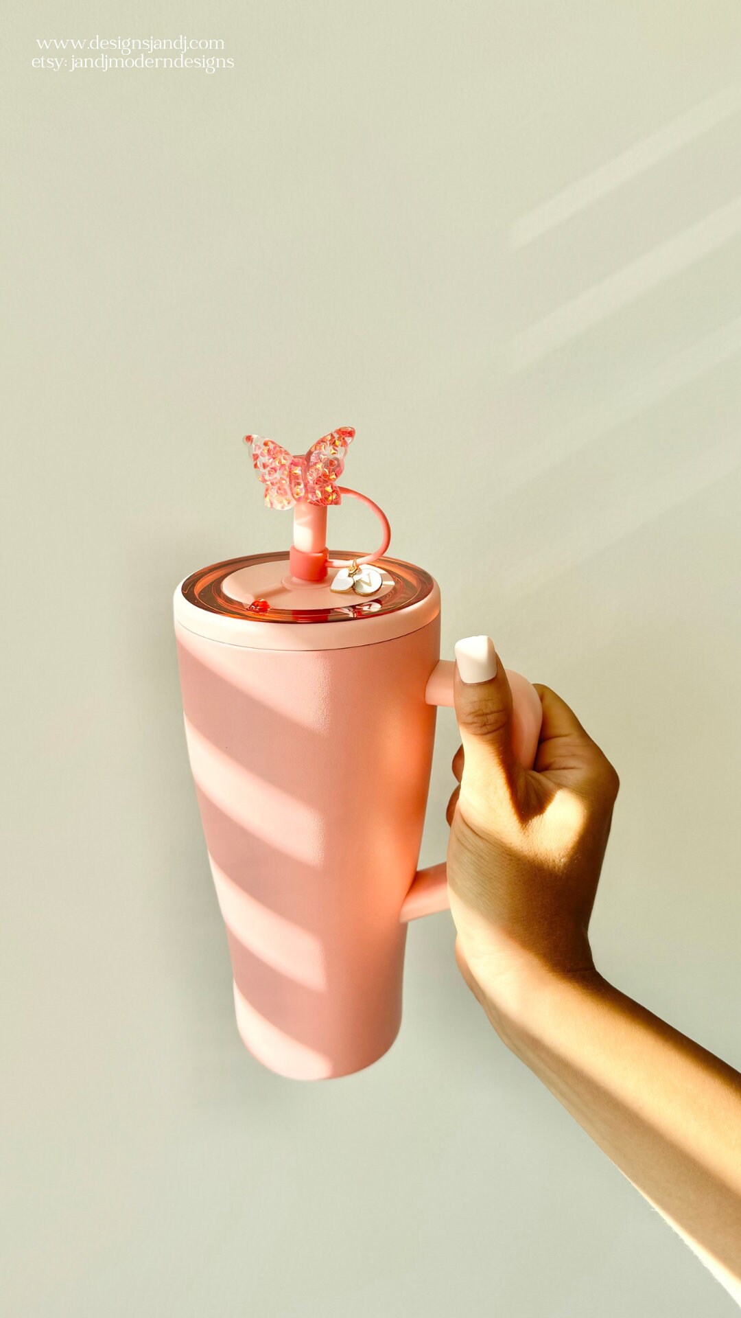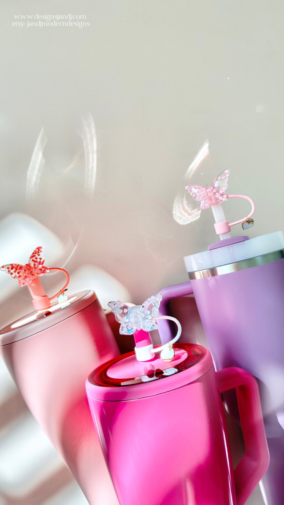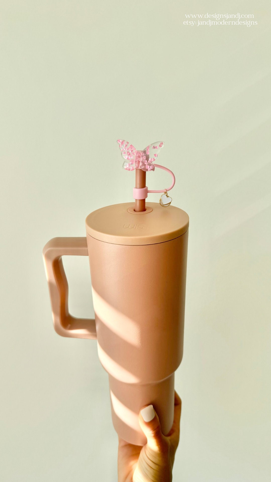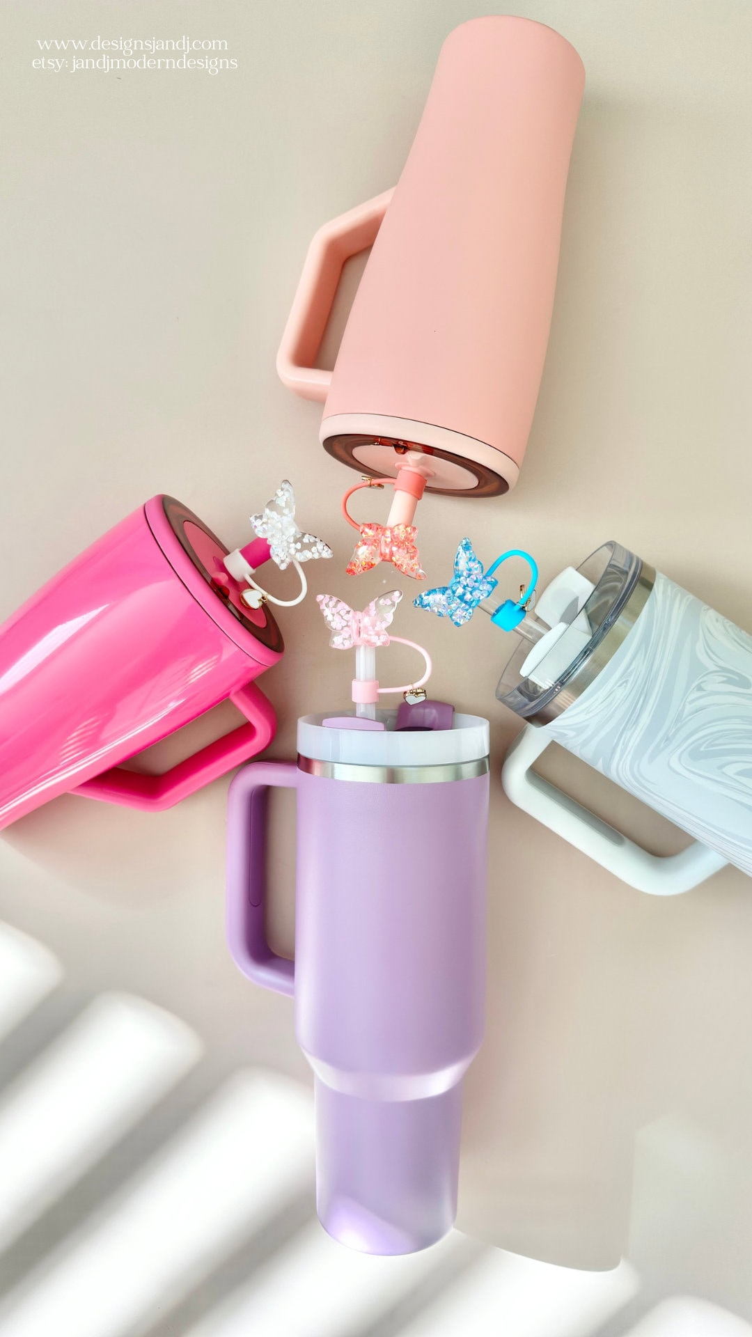 The cutest butterfly straw cap addition to your tumbler straw! 🦋✨Add your letter charm to keep your tumbler safe from dust & bugs - in style!
