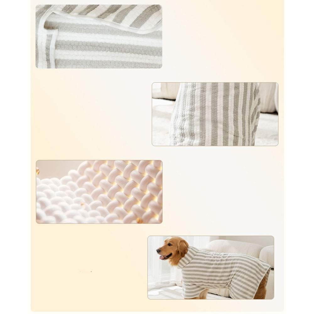 The fiber structure of corn velvet has a large surface area and certain porosity, allowing it to quickly absorb moisture and disperse, store, and release it through capillary action. This characteristic makes corn velvet excellent in terms of water absorption. Can be worn as a shawl or buttoned for two different styles, convenient to use. Grade 3A antibacterial material to protect your pet's health.