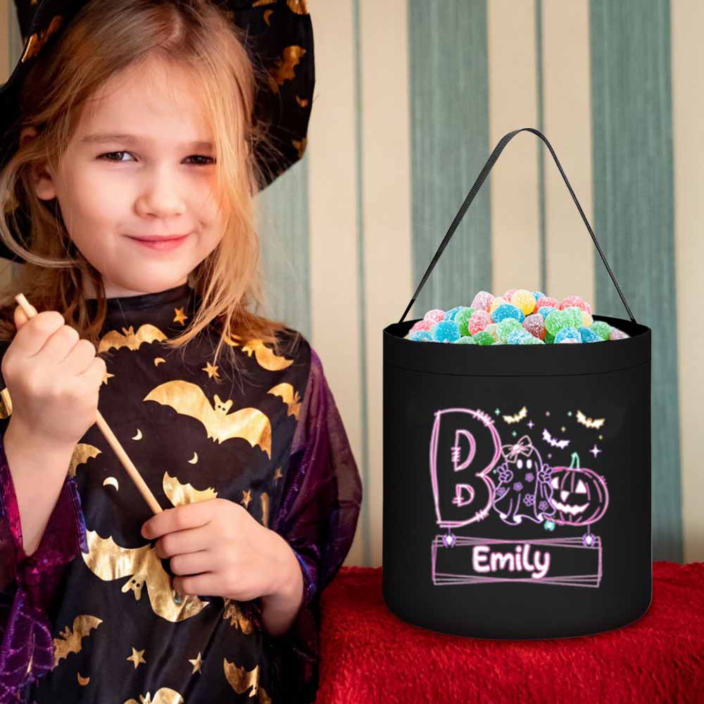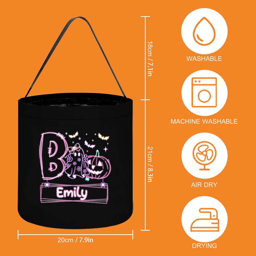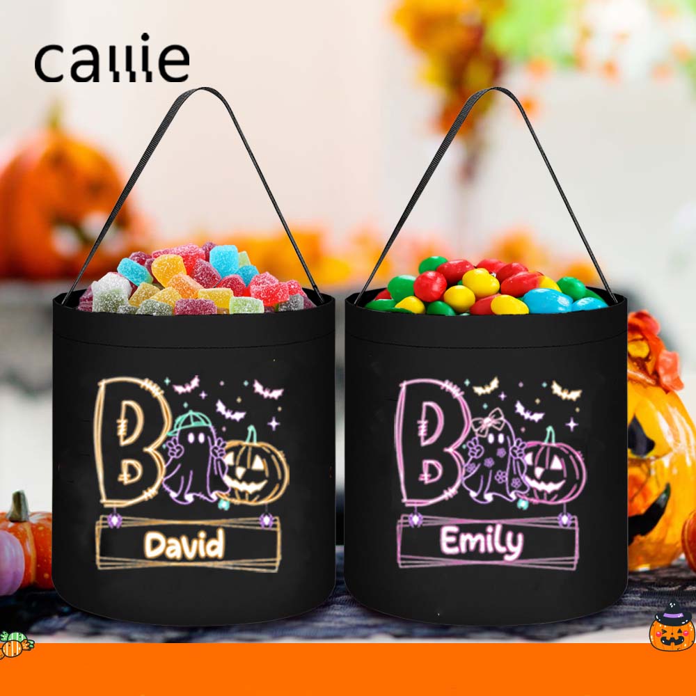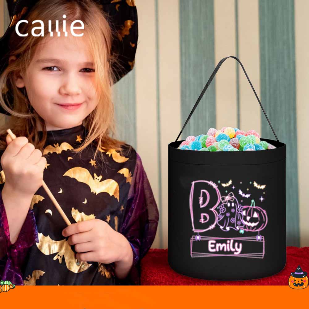 These custom Halloween name bags are perfect for kids to carry their candy and treats while trick or treating. Made from high-quality materials, these horror tote bags feature spooky designs and can be customized with your child's name for an extra special touch.
