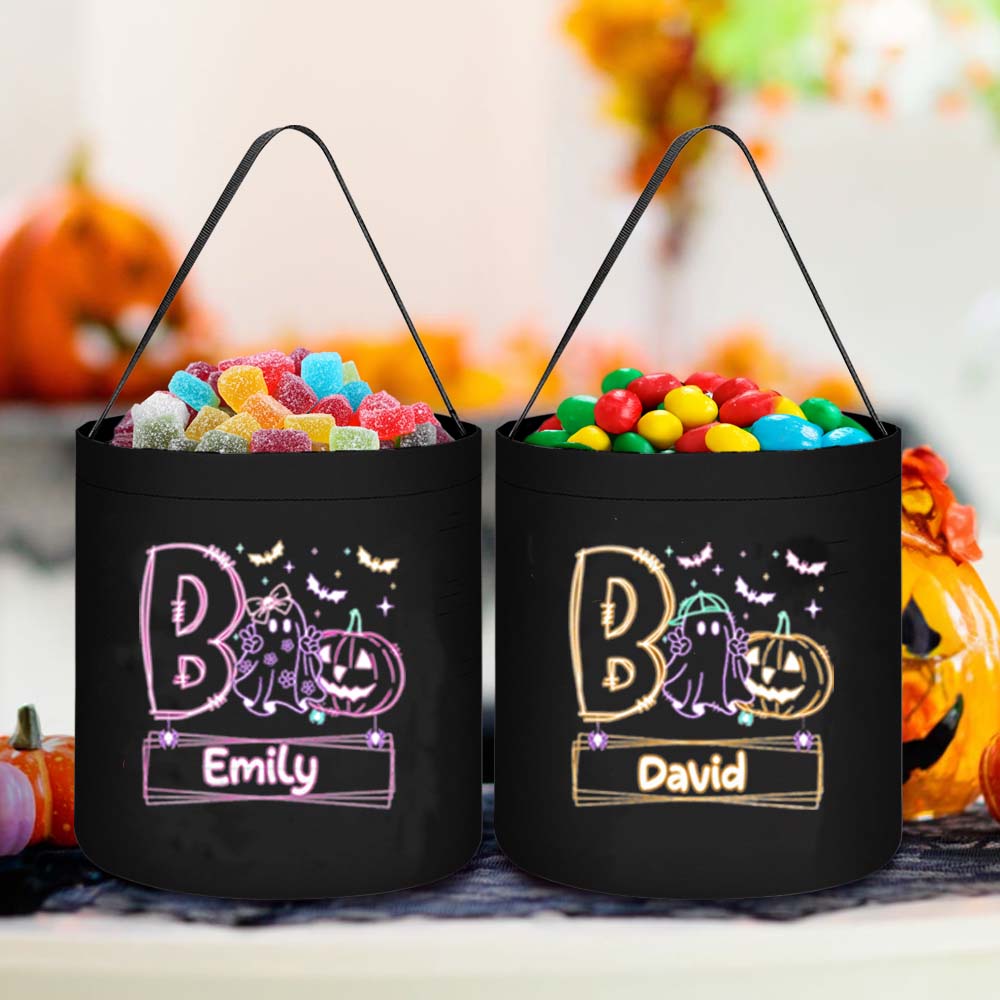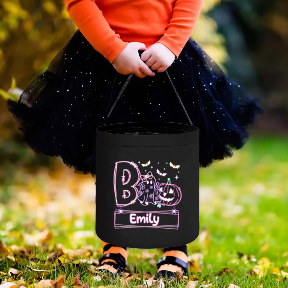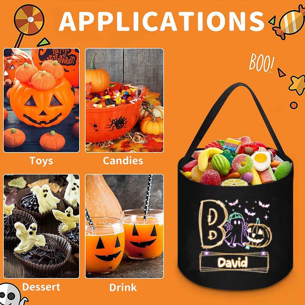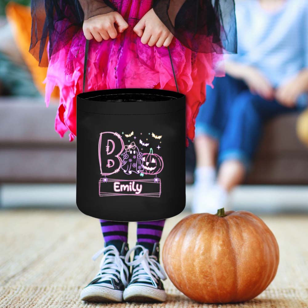 These custom Halloween name bags are perfect for kids to carry their candy and treats while trick or treating. Made from high-quality materials, these horror tote bags feature spooky designs and can be customized with your child's name for an extra special touch.