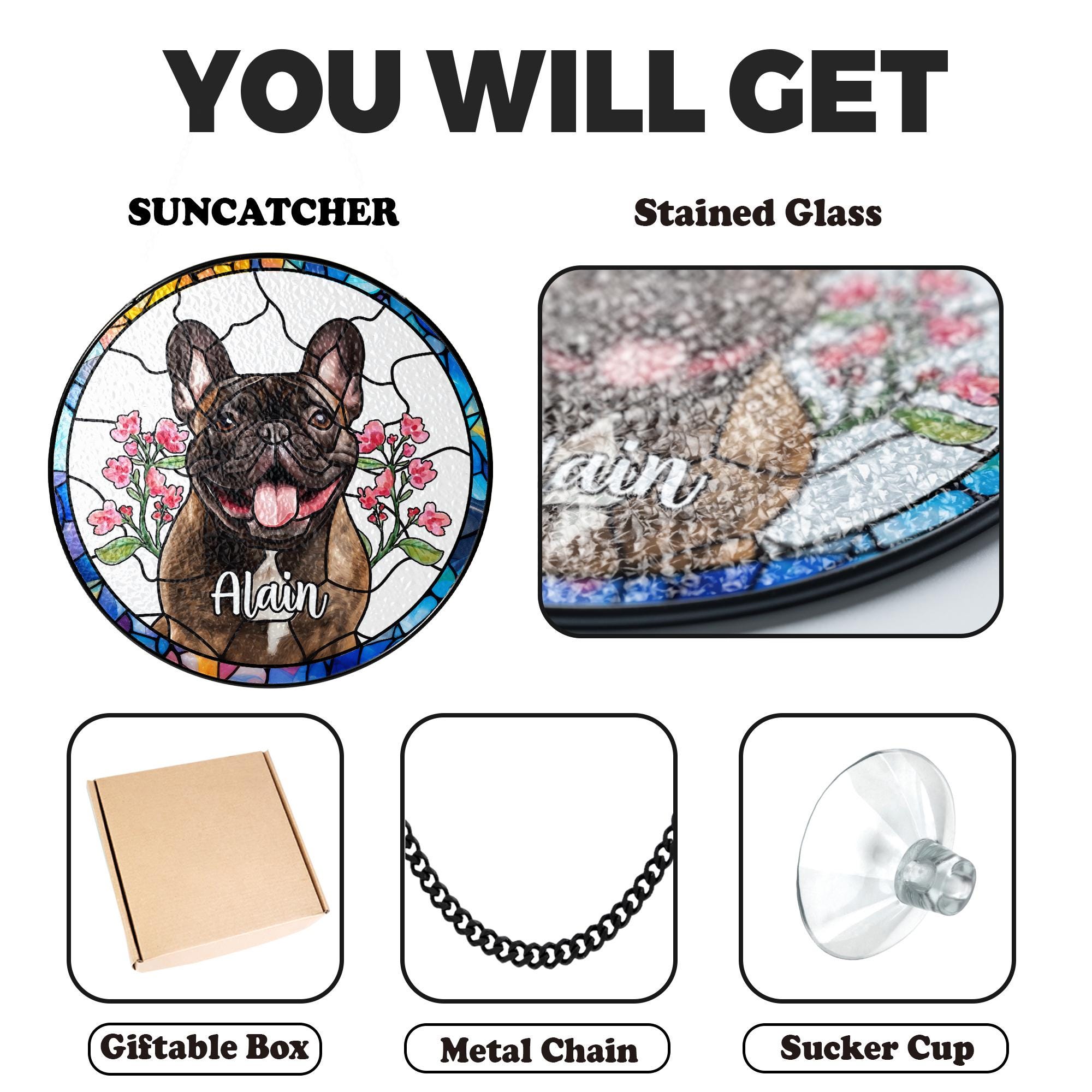 Capture the spirit of your beloved dog in this stunning Personalized Dog Photo Stained Glass Suncatcher. Crafted with meticulous attention to detail, this stunning piece transforms a cherished photo of your furry friend into a vibrant work of art that will warm your heart and brighten any space.