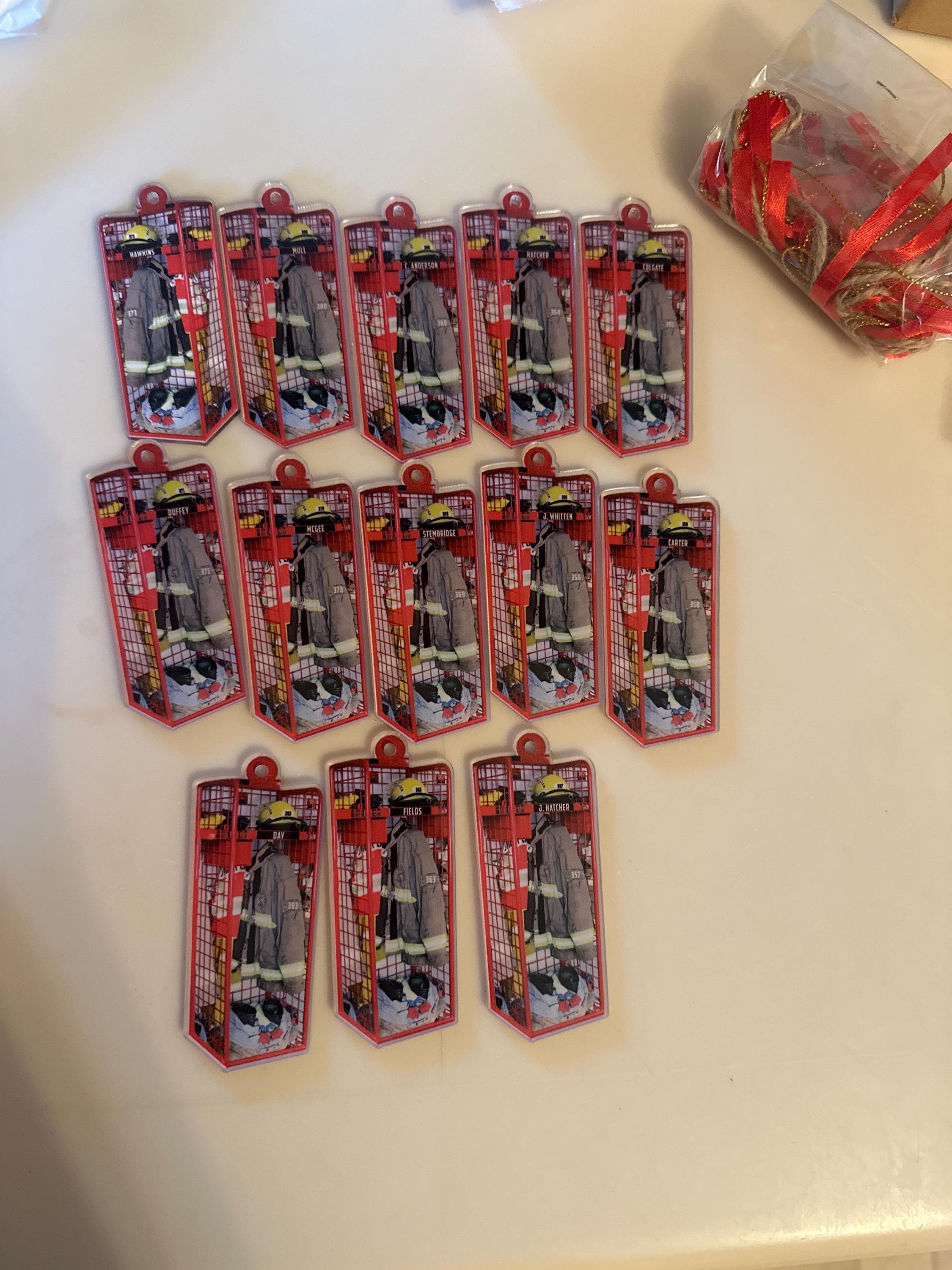 ♥ A hole and twinkle thread attached to strap, including a hanging gold cord and red cord loop to easily hang on your Christmas tree or an ornament stand. Product is 2-side printed