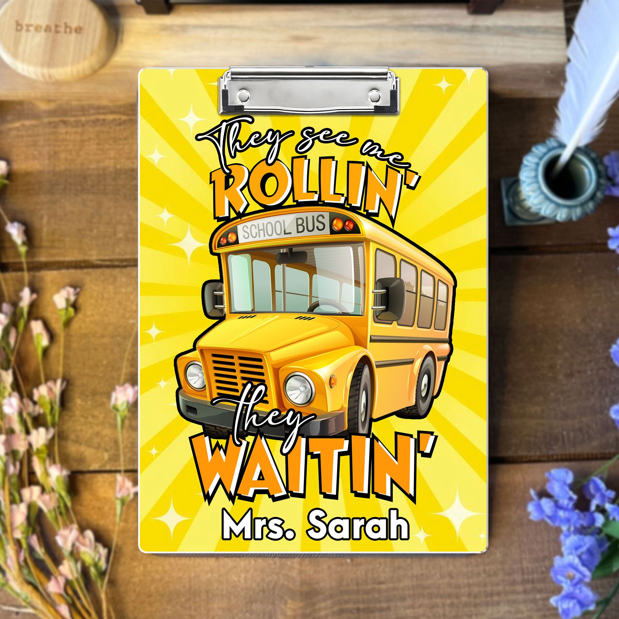 Personalized School Bus Driver Acrylic Clipboard With Name, Gift For Bus Driver, School Bus Driver Appreciation Gift, Back To School Gift