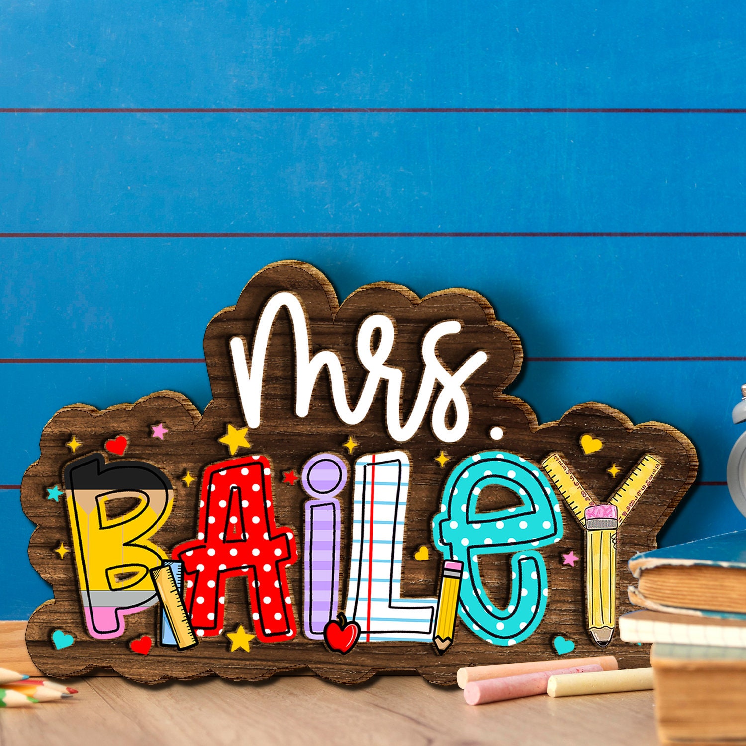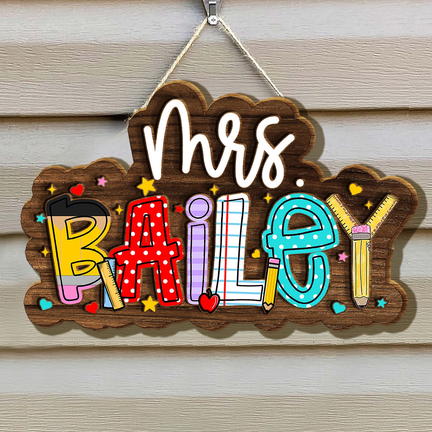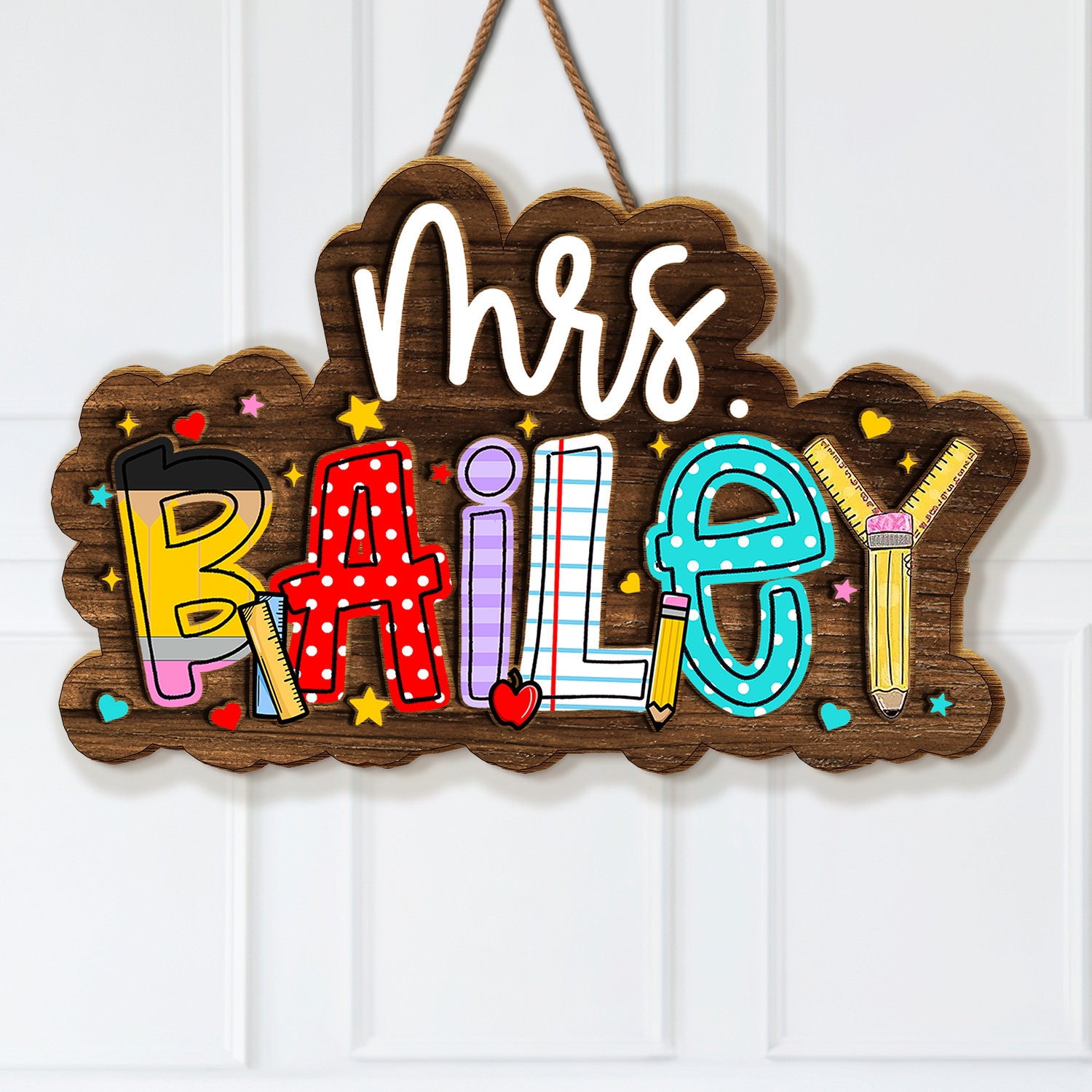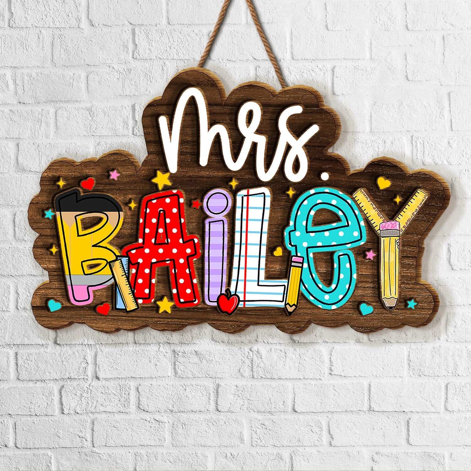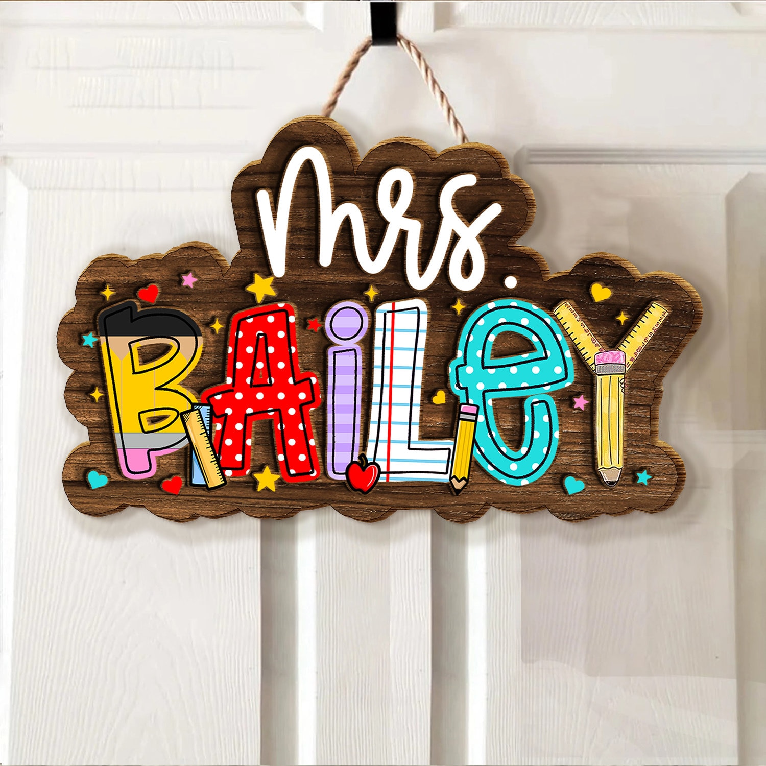 Personalized Teacher Back To School Gift, Customized 3D Teacher Door Hanger, Welcome Teacher Wooden Door Sign, Custom Sign With Teacher Name