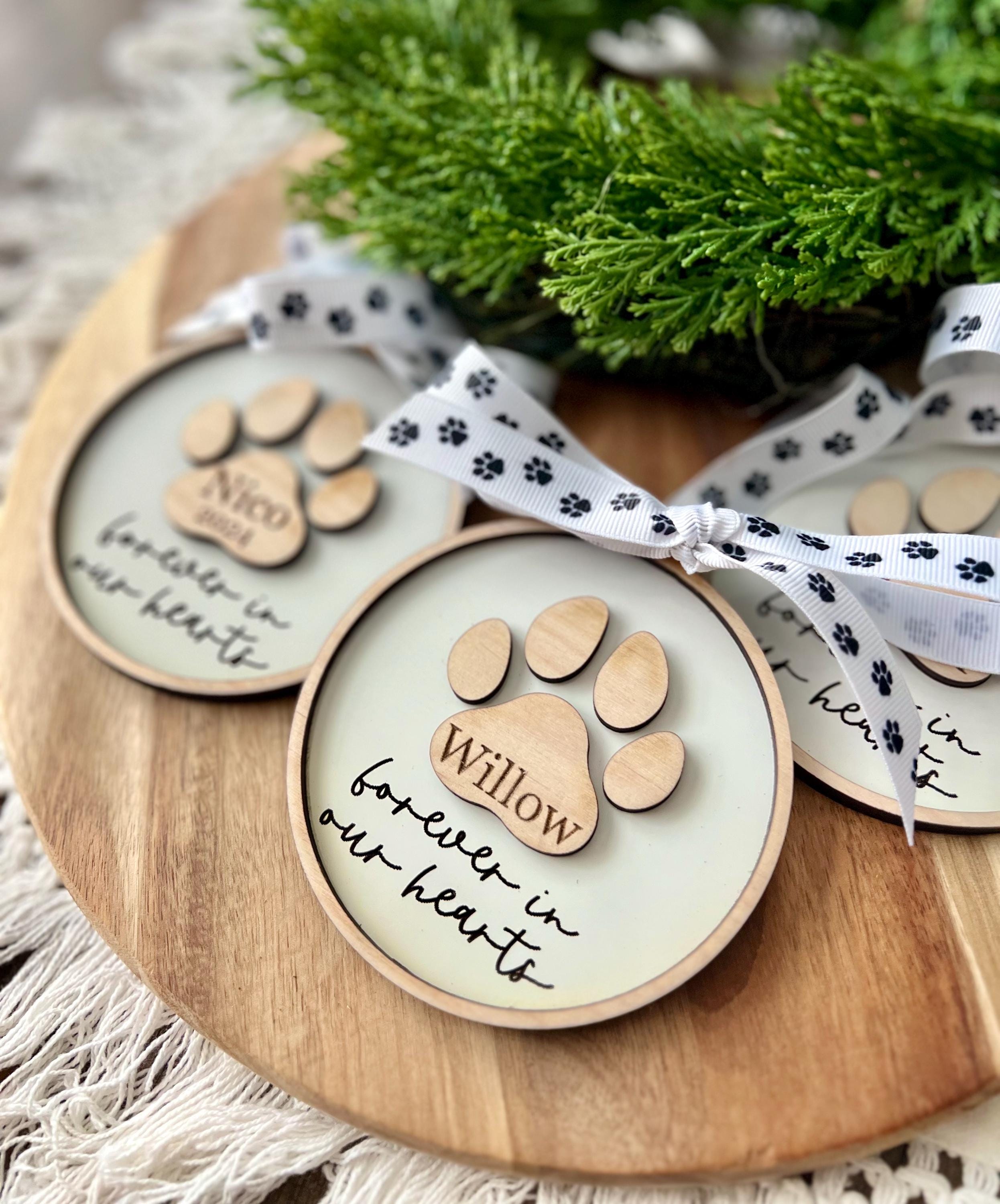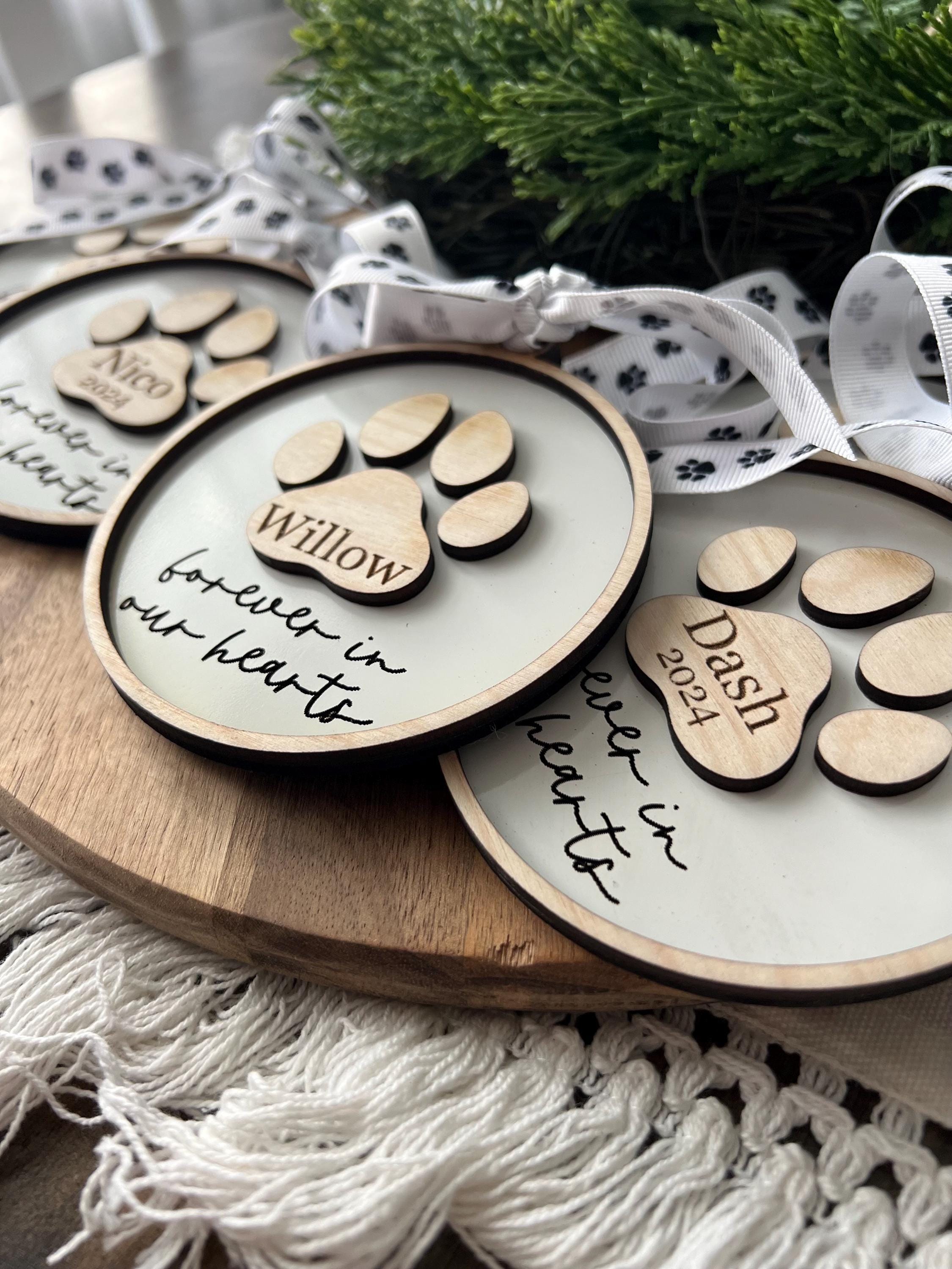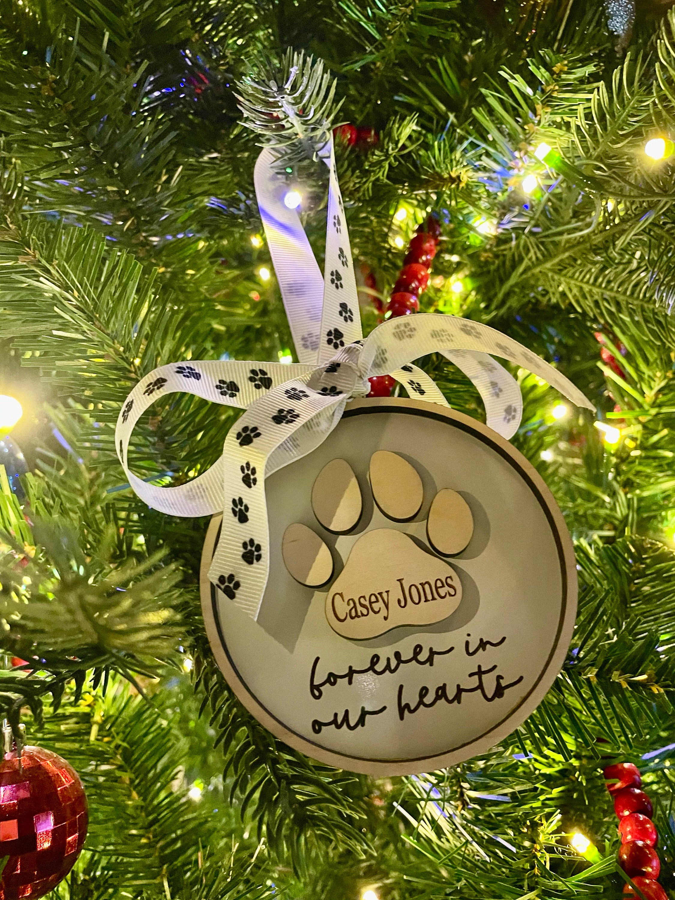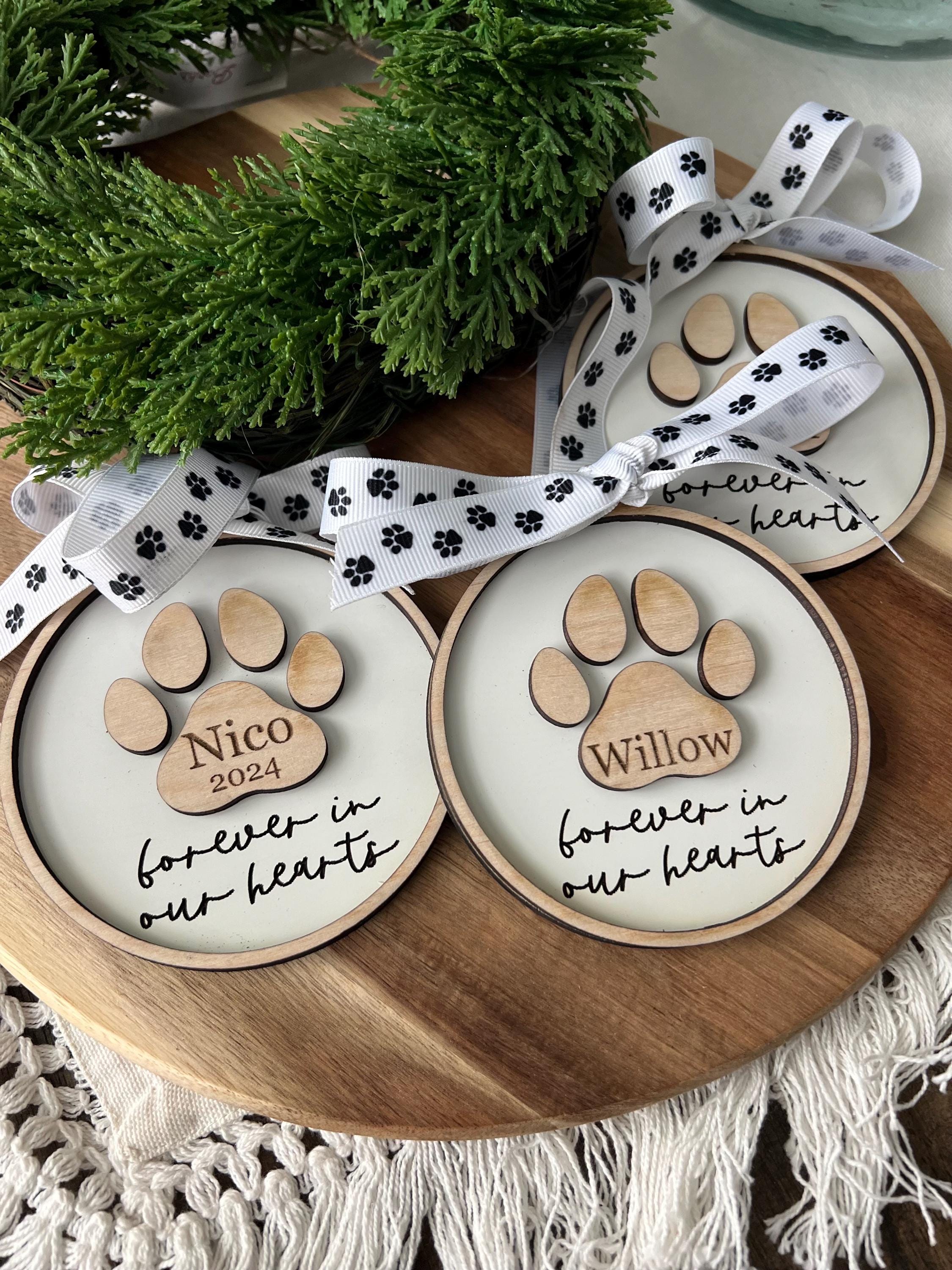 Celebrate the life of your beloved pet with our personalized paw print ornament. Personalize with any name & year (optional).