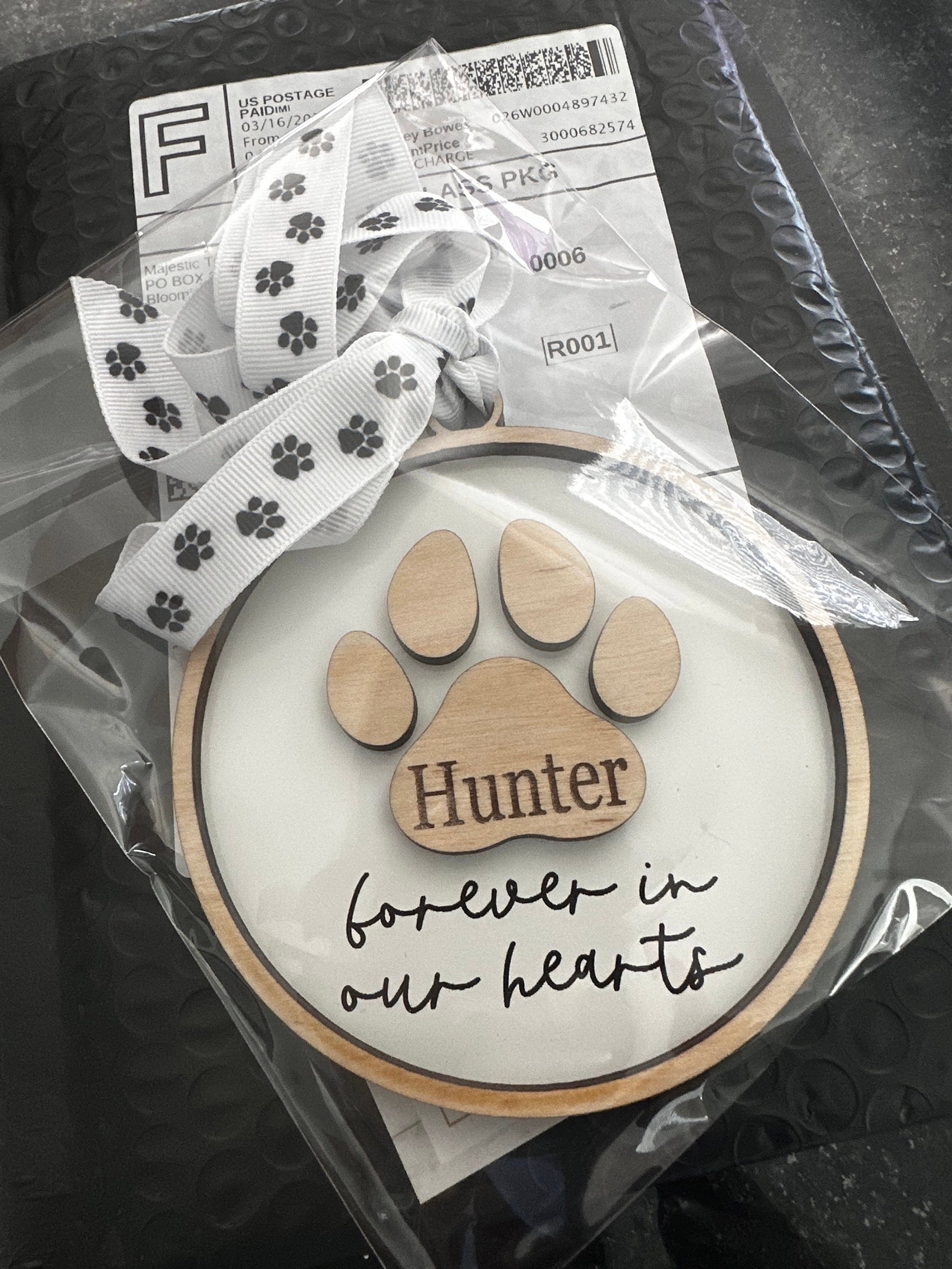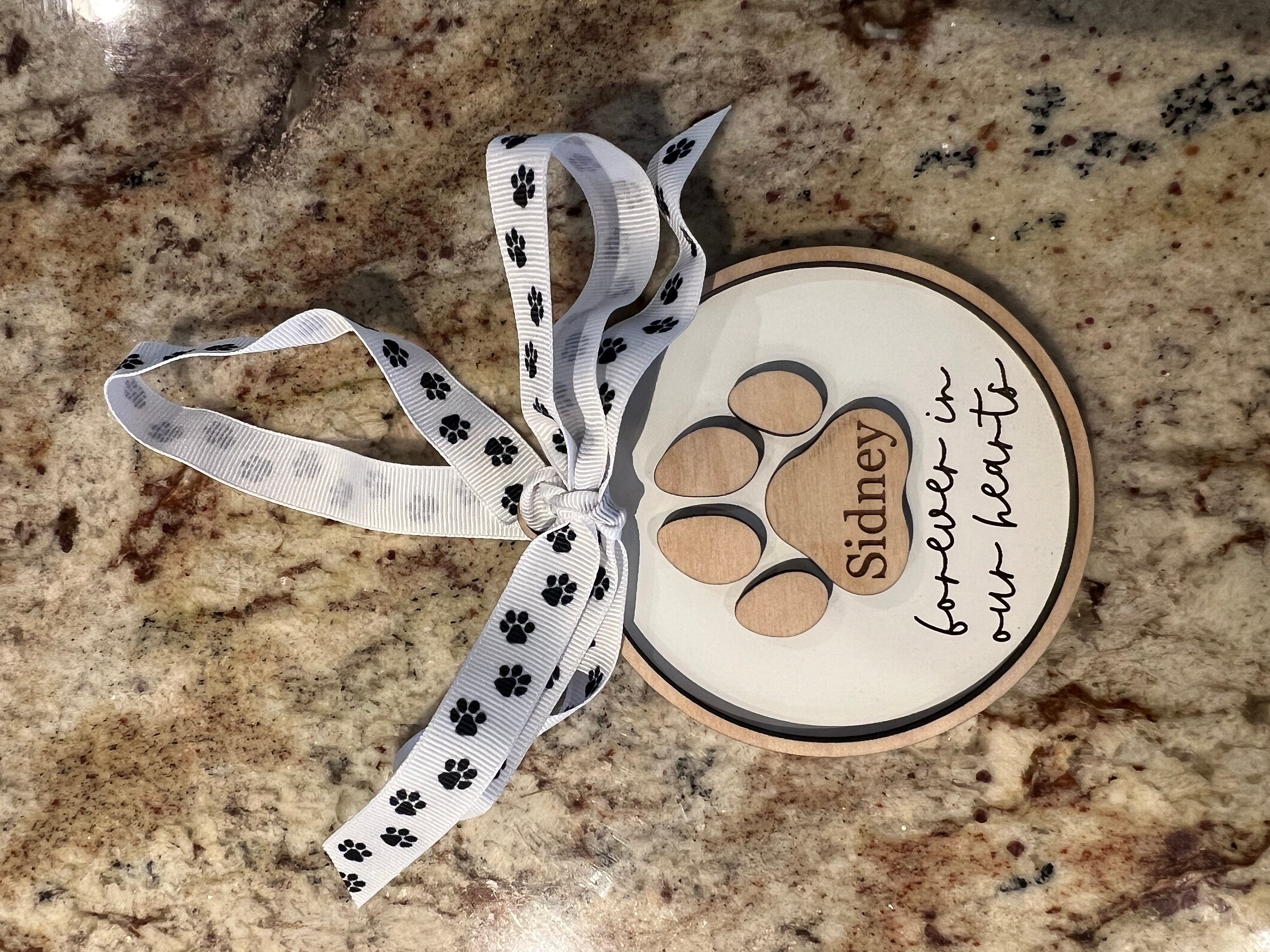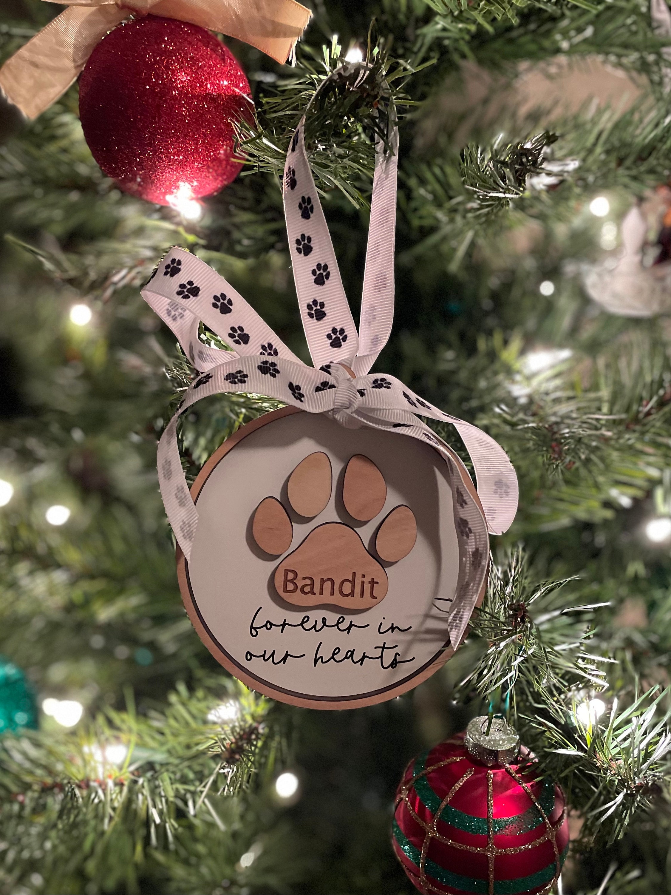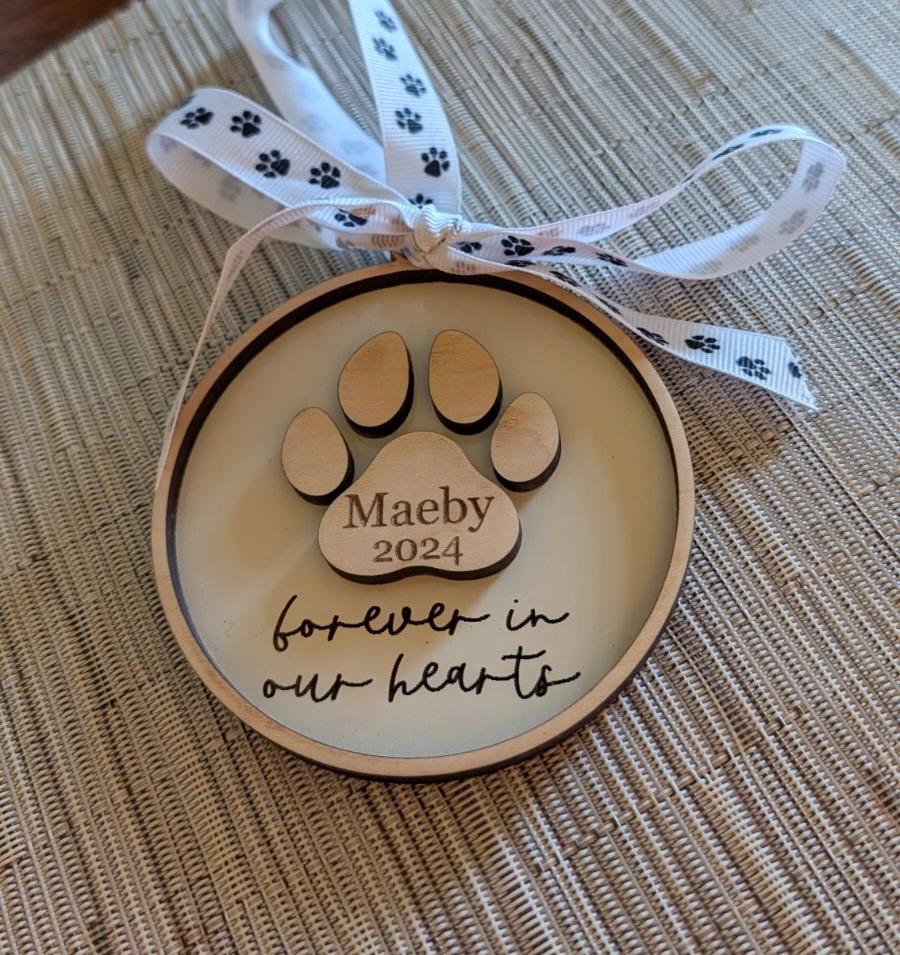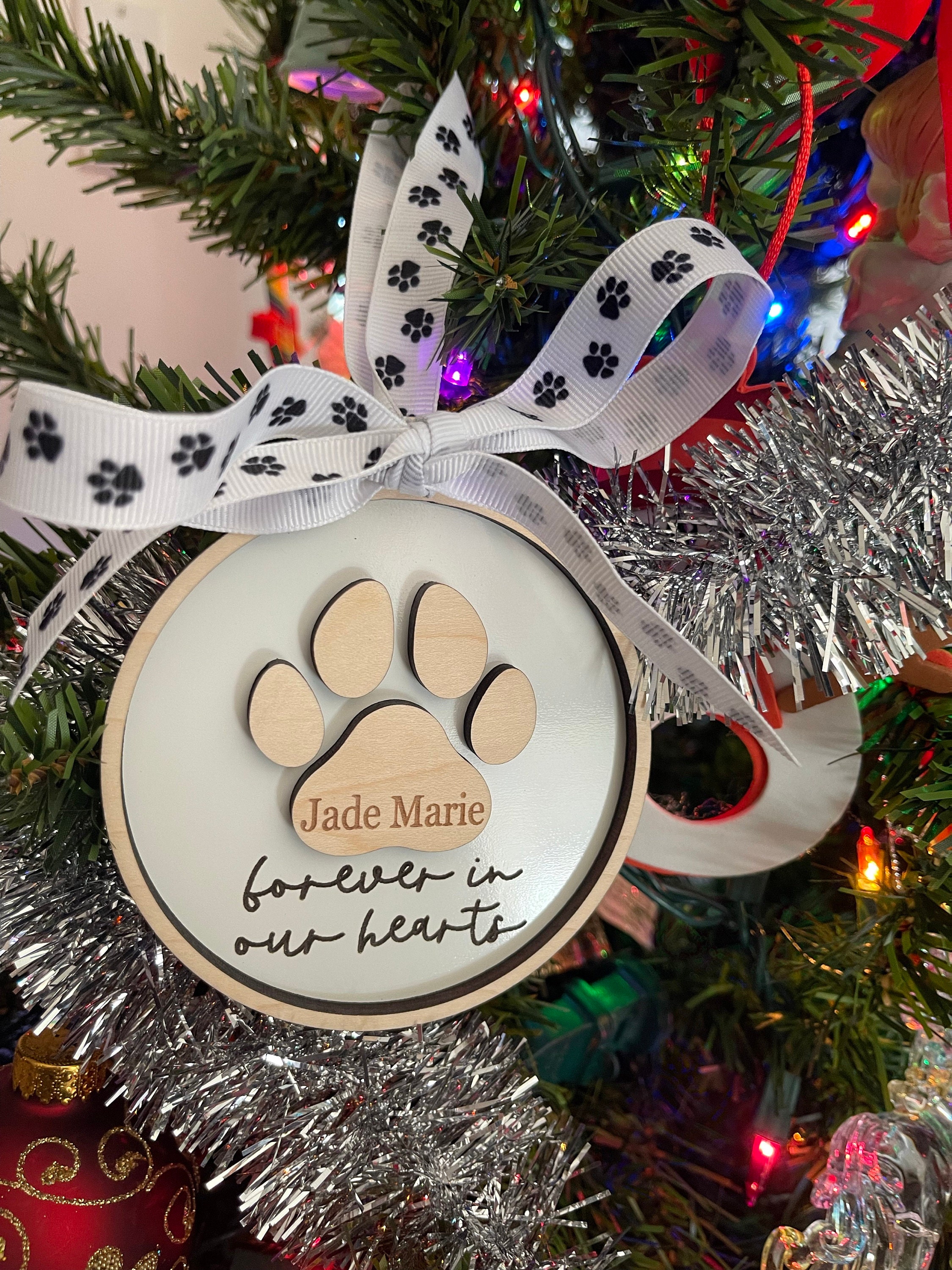 Celebrate the life of your beloved pet with our personalized paw print ornament. Personalize with any name & year (optional).