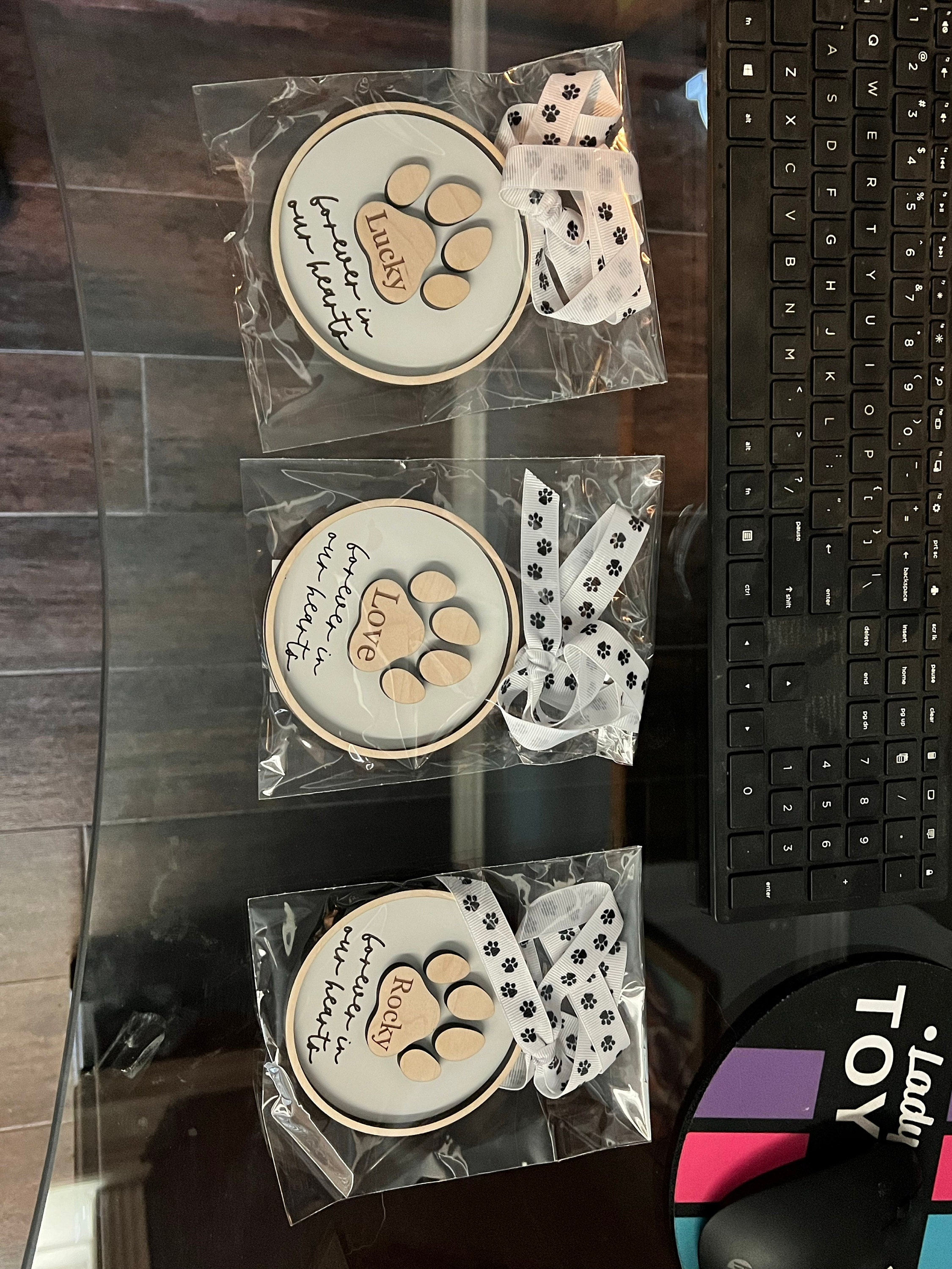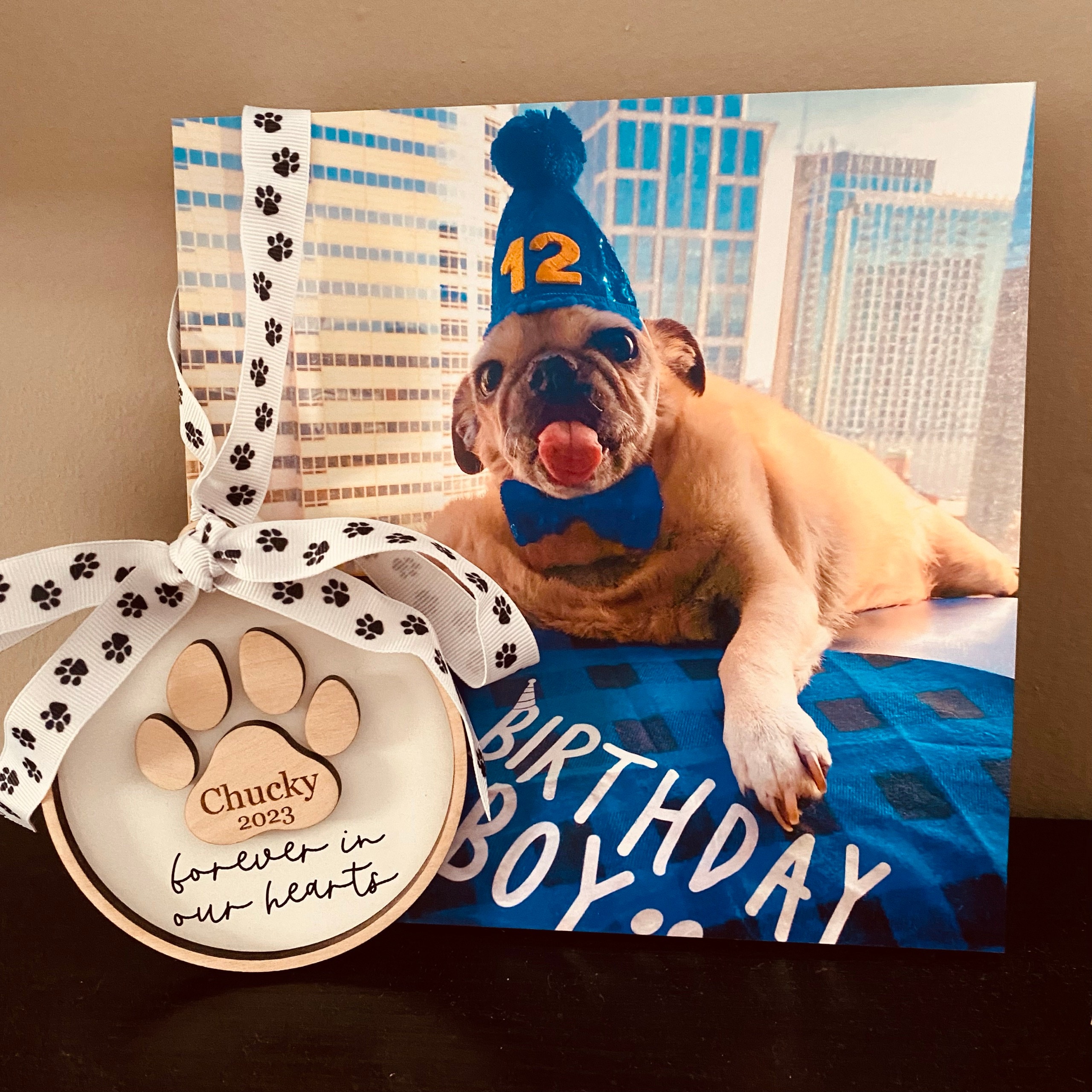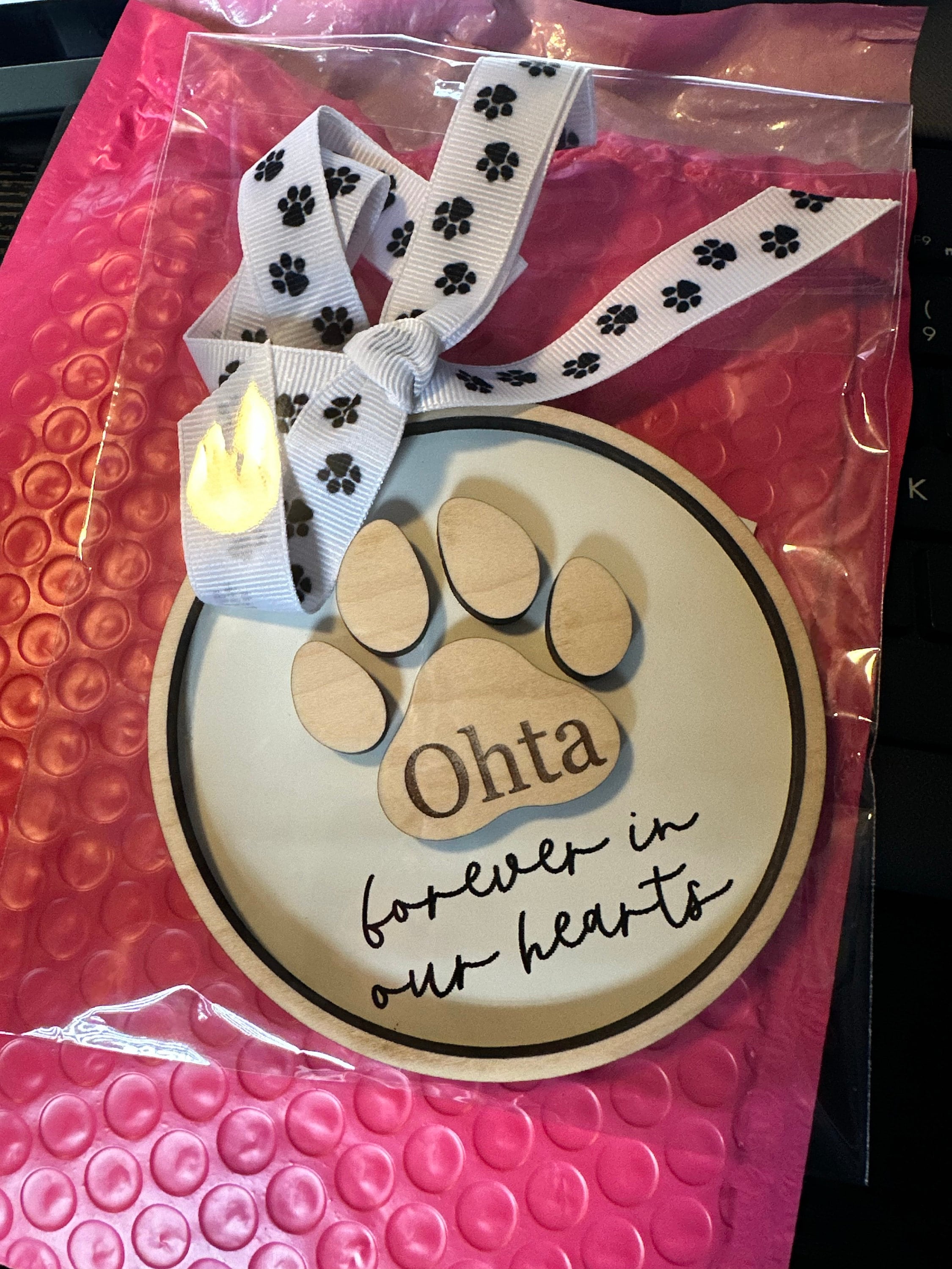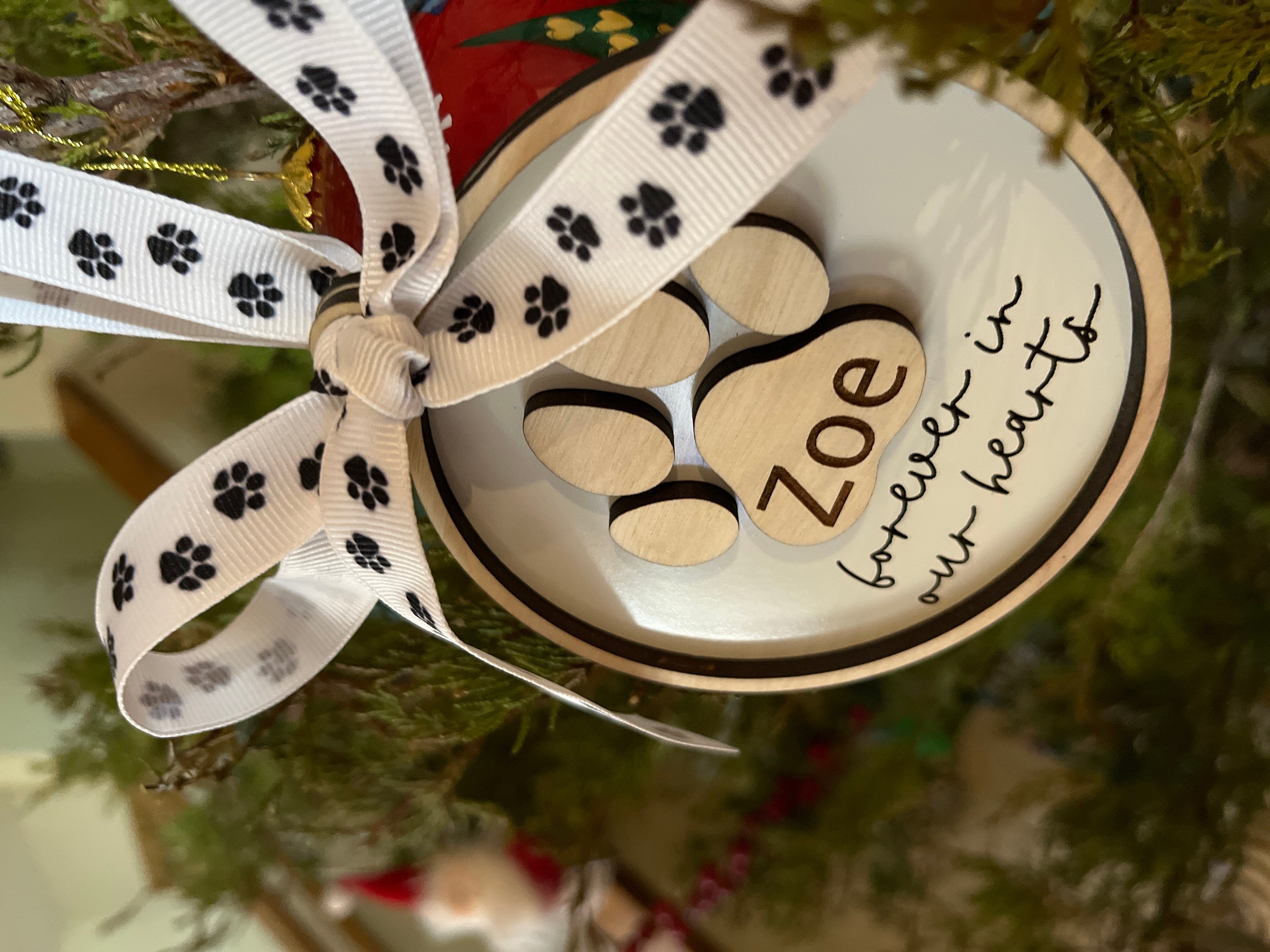 Celebrate the life of your beloved pet with our personalized paw print ornament. Personalize with any name & year (optional).