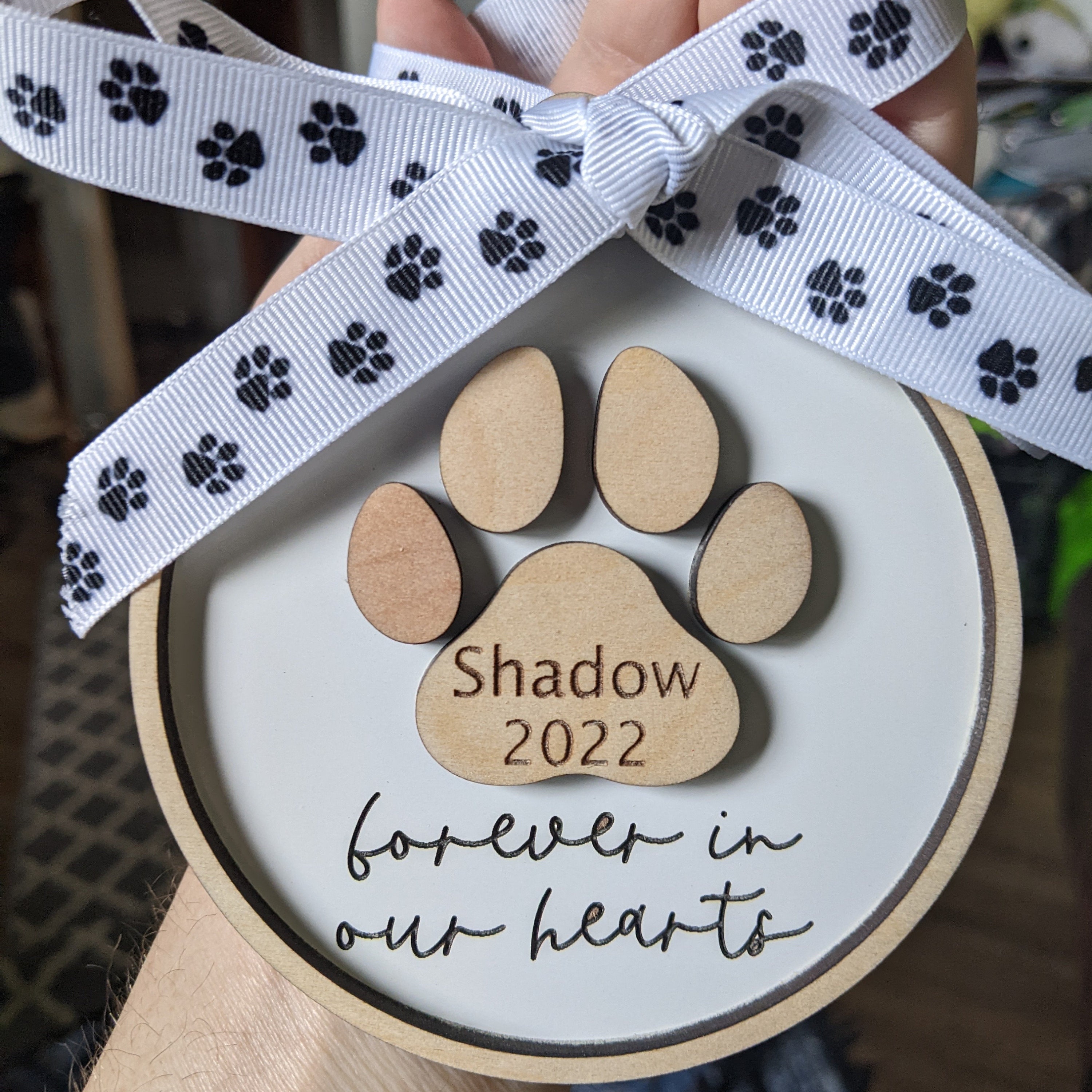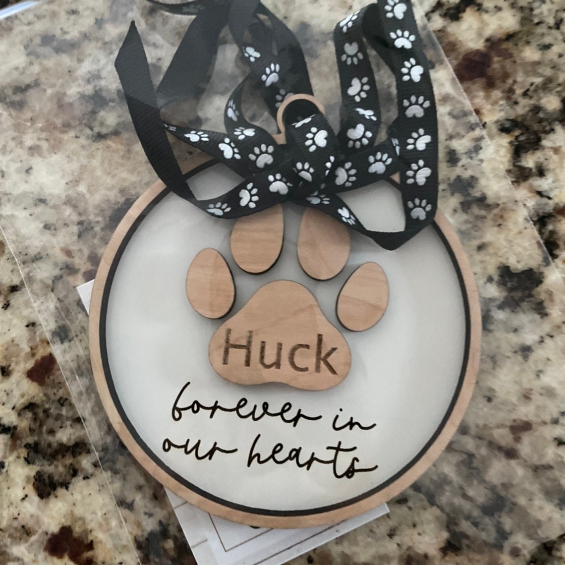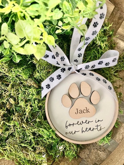 Personalized Wood Memorial Pet Ornament Forever in our Hearts