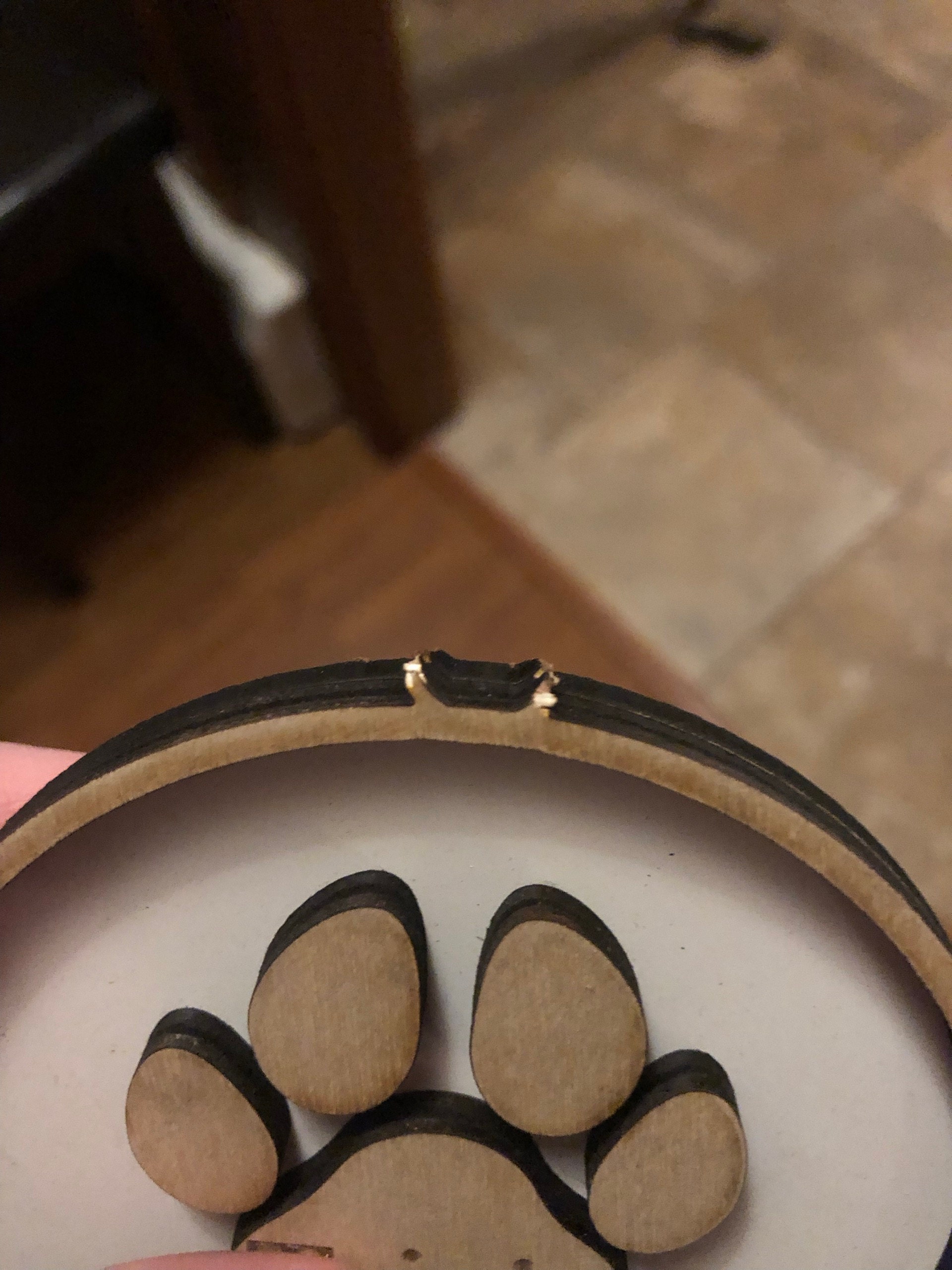 Ornament is made using whiteboard for the backing and maple. The name is laser engraved and ornament is laser cut giving it a clean and crisp finish. Ornament comes ready to hang with ribbon.