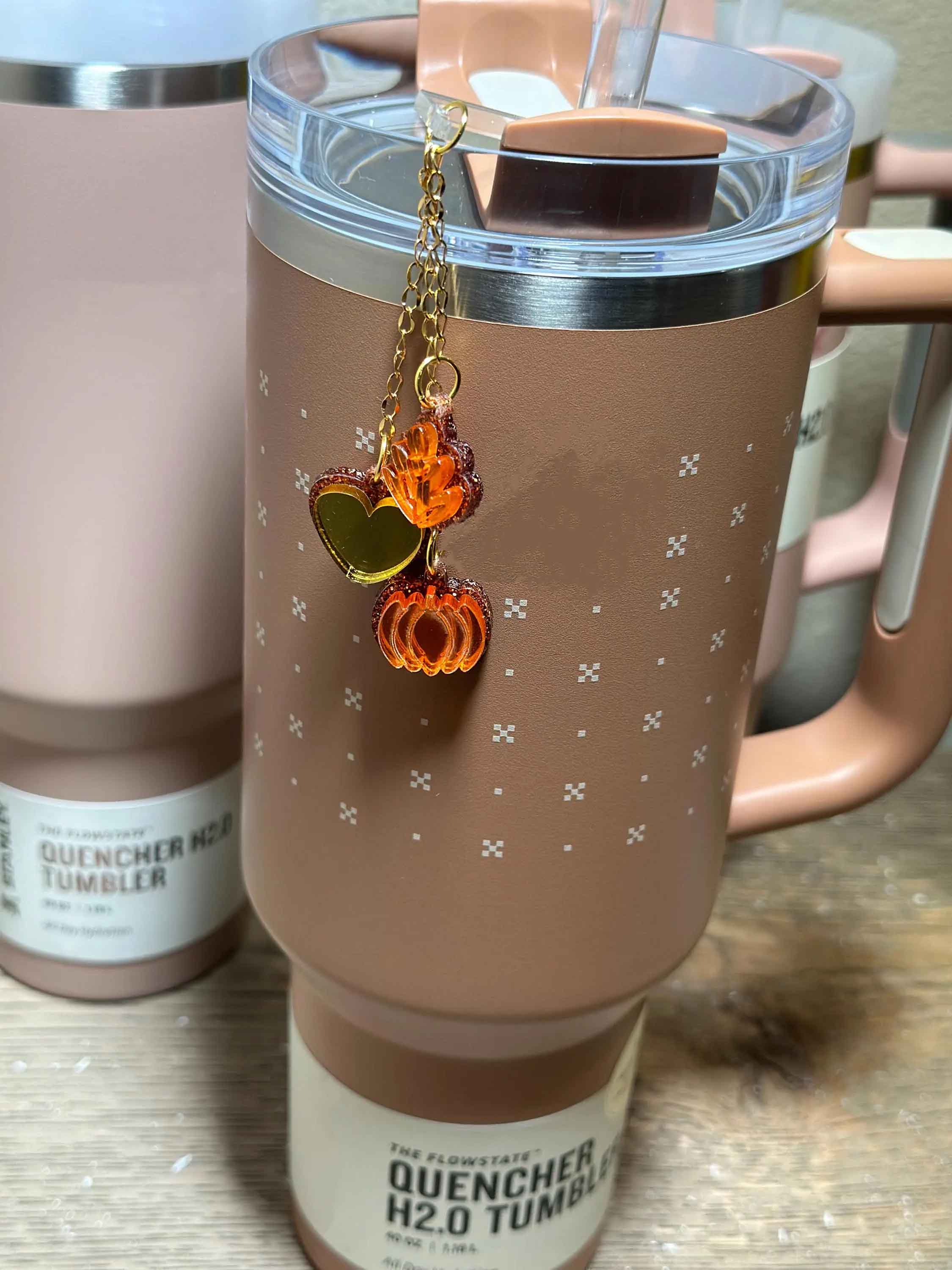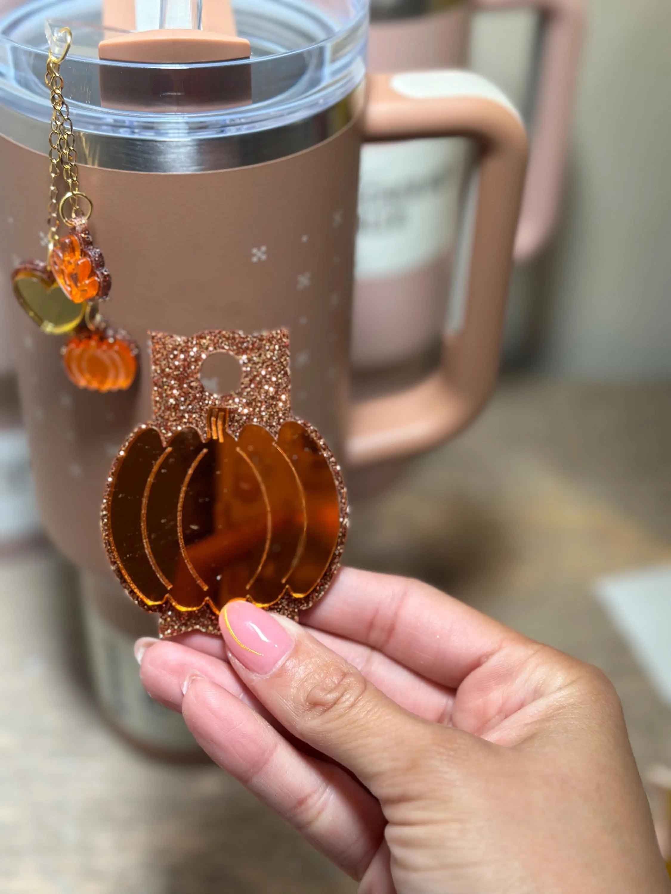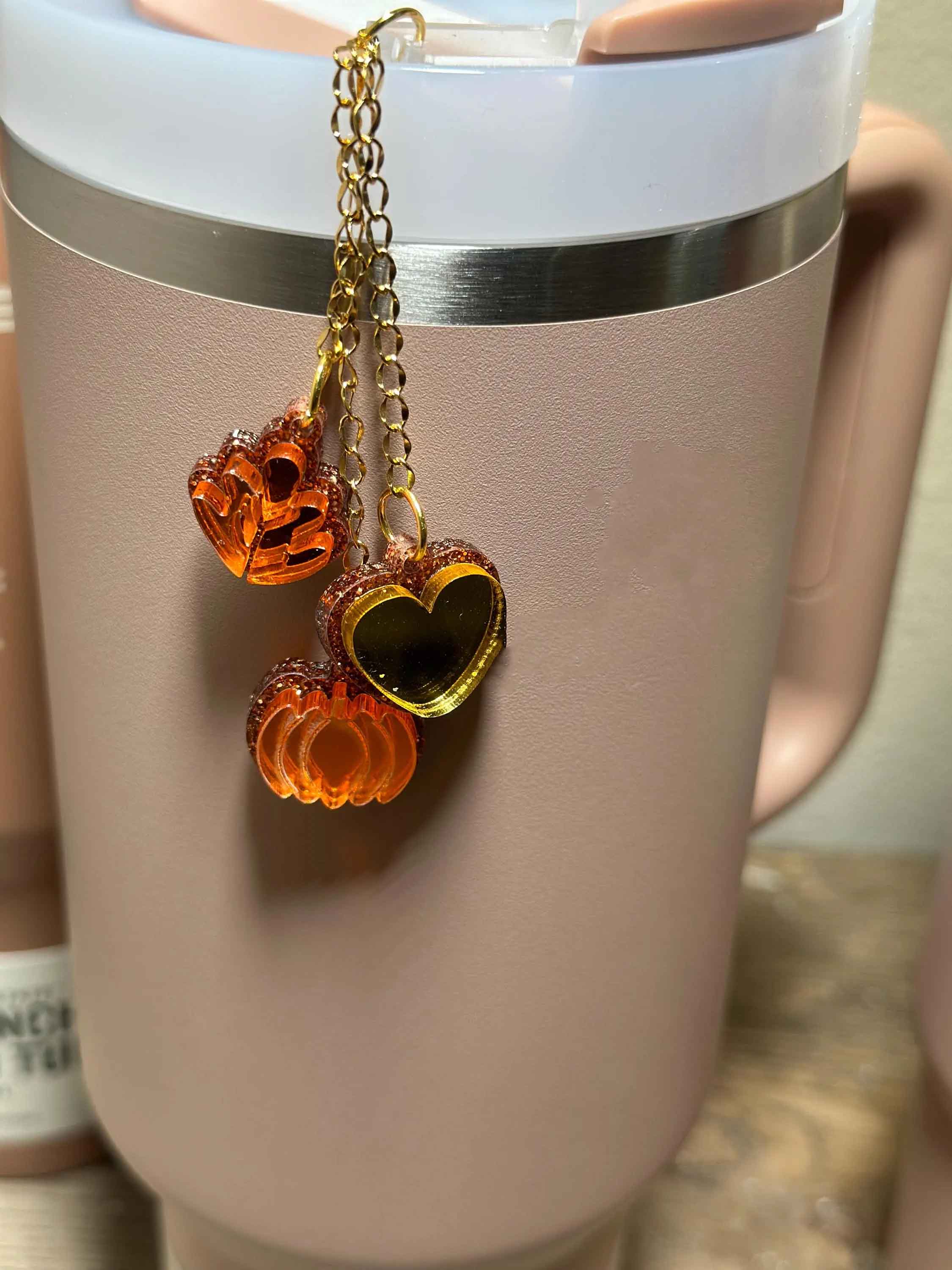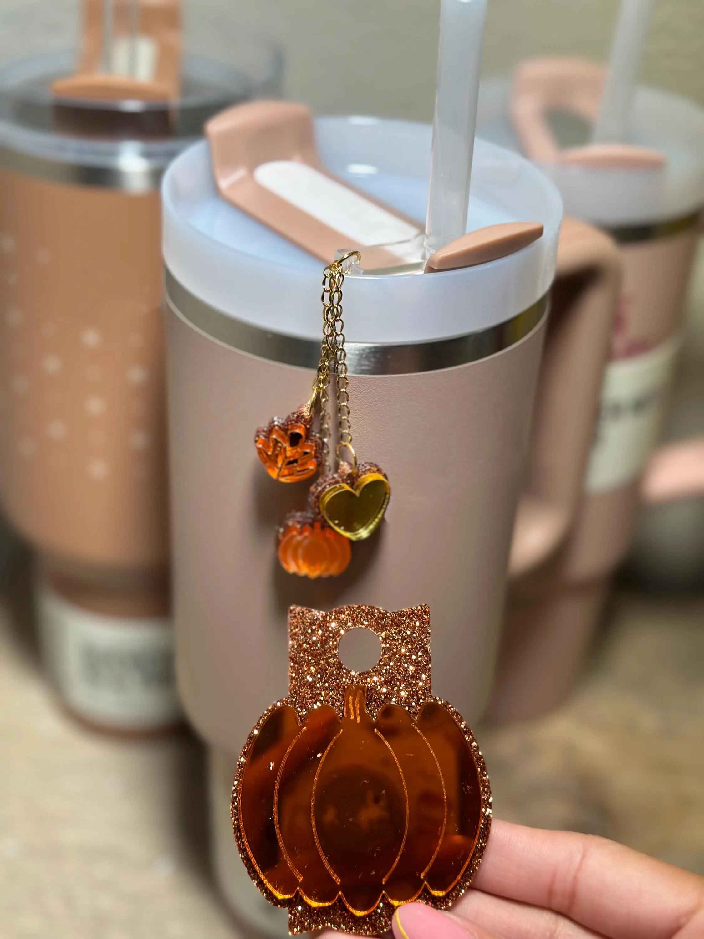 Add a touch of fall to your favorite tumbler with our custom-designed pumpkin-themed accessories! Perfect for your 40oz and 30oz tumblers, these fall-inspired pieces include a personalized name plate and charming pumpkin and heart charms that celebrate the cozy autumn season. ๐