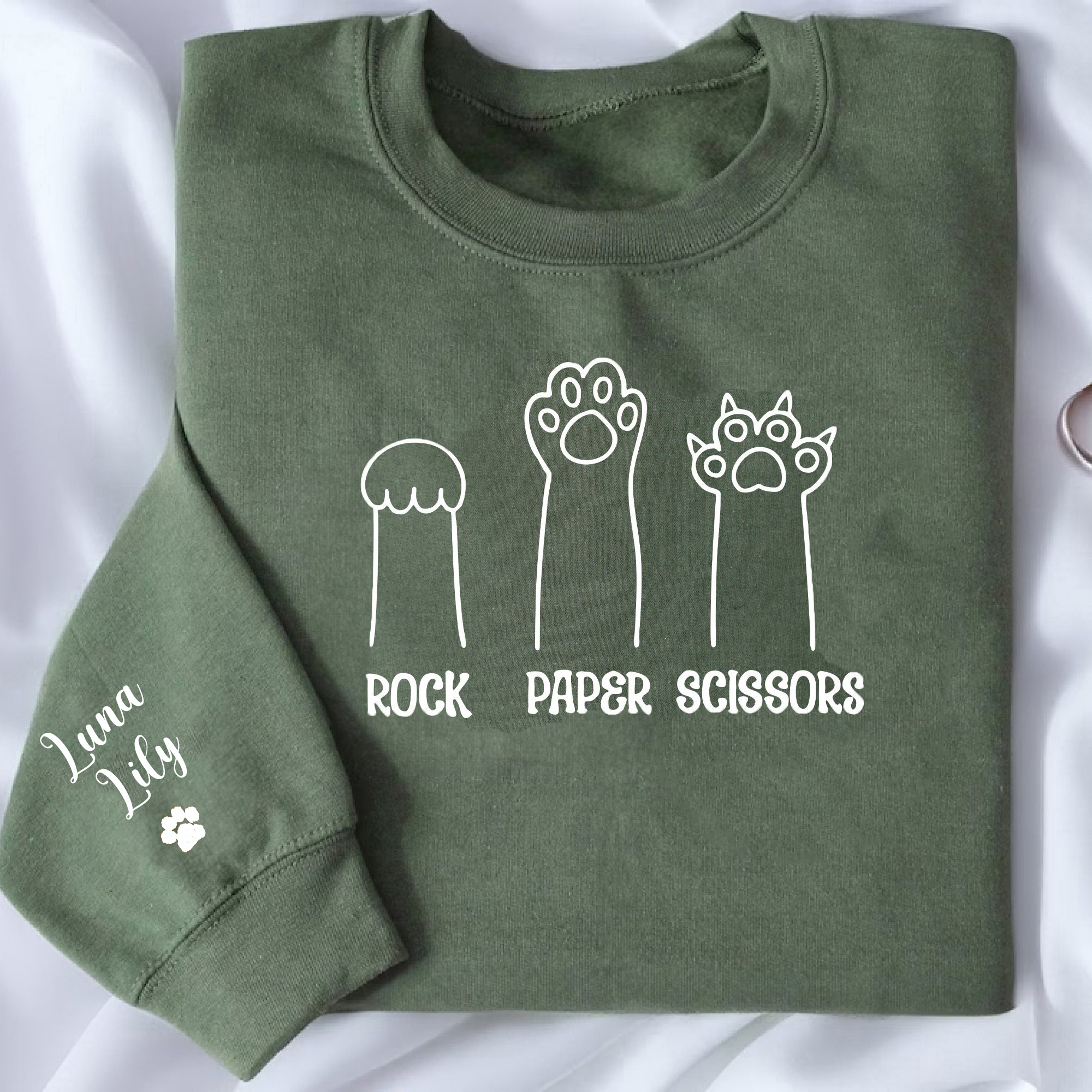 Rock Paper Scissors Sweatshirt, Funny Cat Paw Shirt, Unisex Crewneck Shirt for Cat Lover, Cat Owner Shirt, Cat Paws Shirts, Gift for Cat Mom