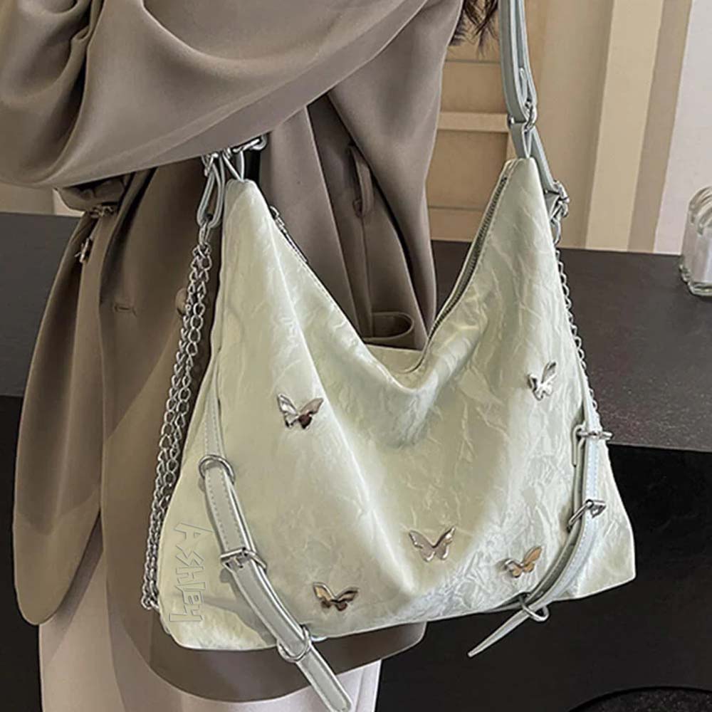 - 【Product Design Highlights】: Dynamic Butterfly Decoration: The carefully crafted butterfly decoration dances elegantly, full of elegant and fashionable flavor. Spacious Pockets: The interior space is roomy and has a sufficient capacity, making it easy to organize your personal items. Delicate and Soft Lining: Protects your belongings from damage with its meticulous care. Suitable for All Seasons: It is universal for all seasons, satisfying your needs in spring, summer, autumn, and winter.