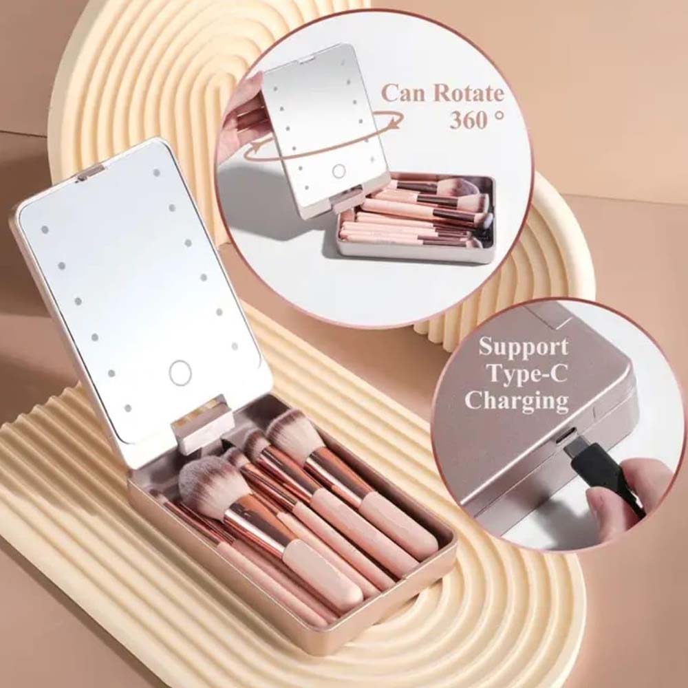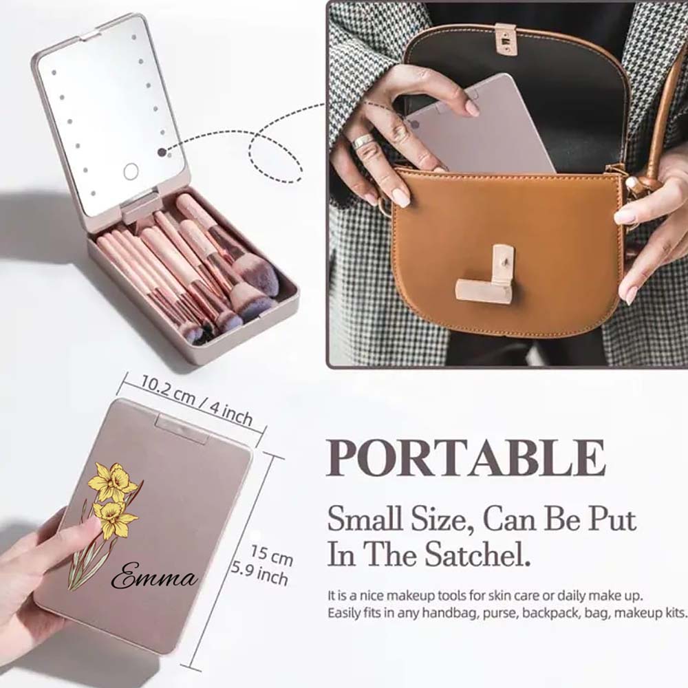 [Essential for travel] This mini makeup brush with LED makeup mirror, can light up, fold, store mirror with lights to give you the perfect makeup experience, a small makeup mirror box placed in the travel bag, that is neat and does not take up space.