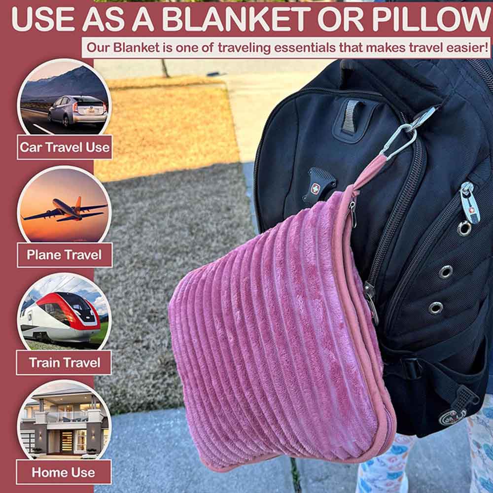 Unmatched Convertible Comfort: This blanket converts into a pillow travel bag, offering dual functionality and support for your neck during travels. 💤🎒